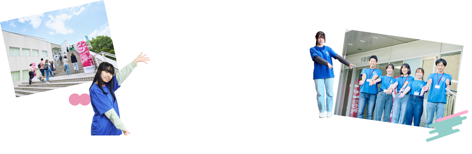 初めて参加される方は「キャンパスガイダンス」からのご参加をおすすめしております。学生スタッフが大学の紹介や当日のオープンキャンパスの実施内容をお伝えいたします。また、2回目以降に参加される方は、受けたいプログラムの時間からご参加いただくことも可能です。