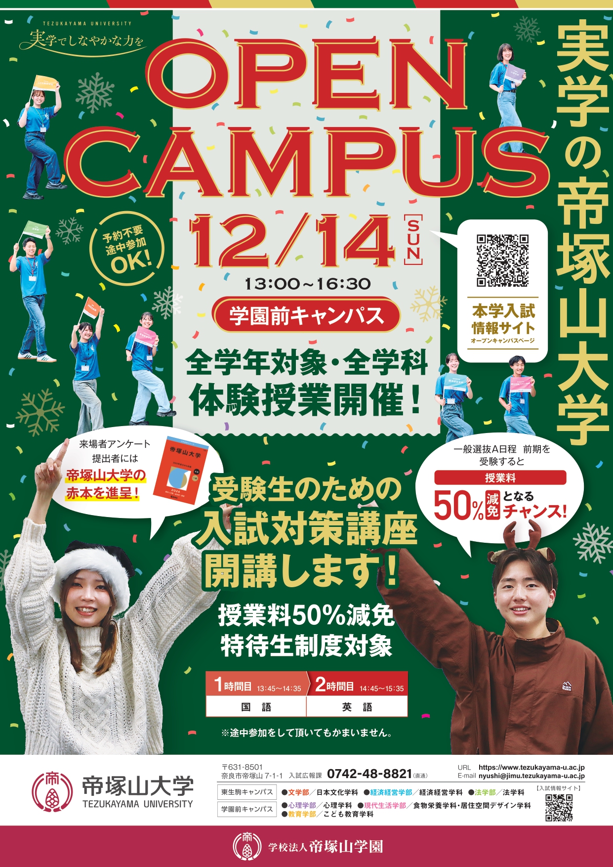 12月14日(日) 13:00~16:30 オープンキャンパスを学園前キャンパスで開催します!