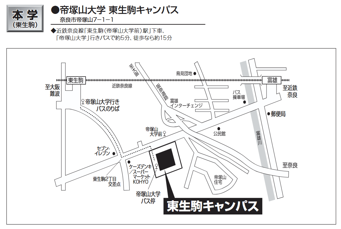 試験会場で東生駒キャンパスを選ばれた方は、当日は東生駒キャンパスに集合してください。