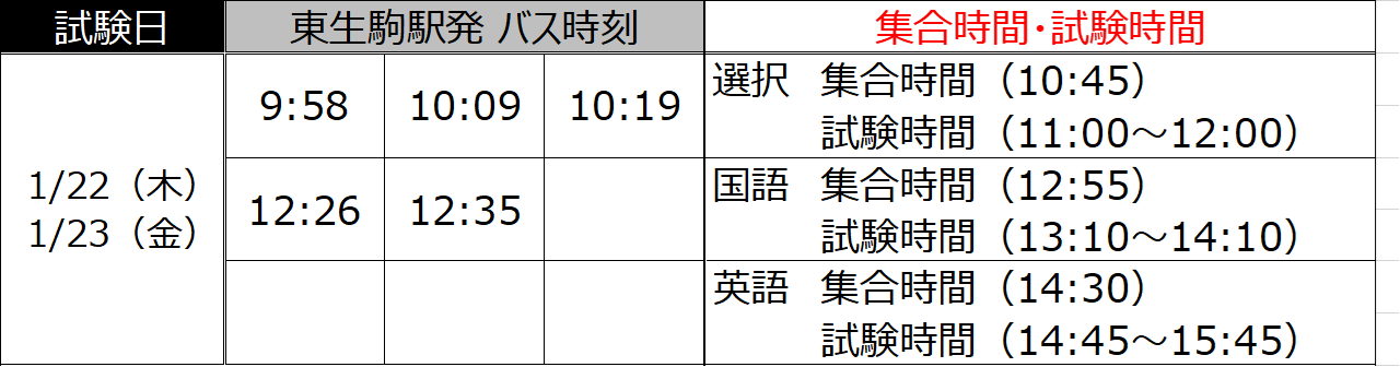 1/22(木)・1/23(金)実施の入学試験(一般選抜A日程 前期)における帝塚山大学行きバスについてご案内いたします。