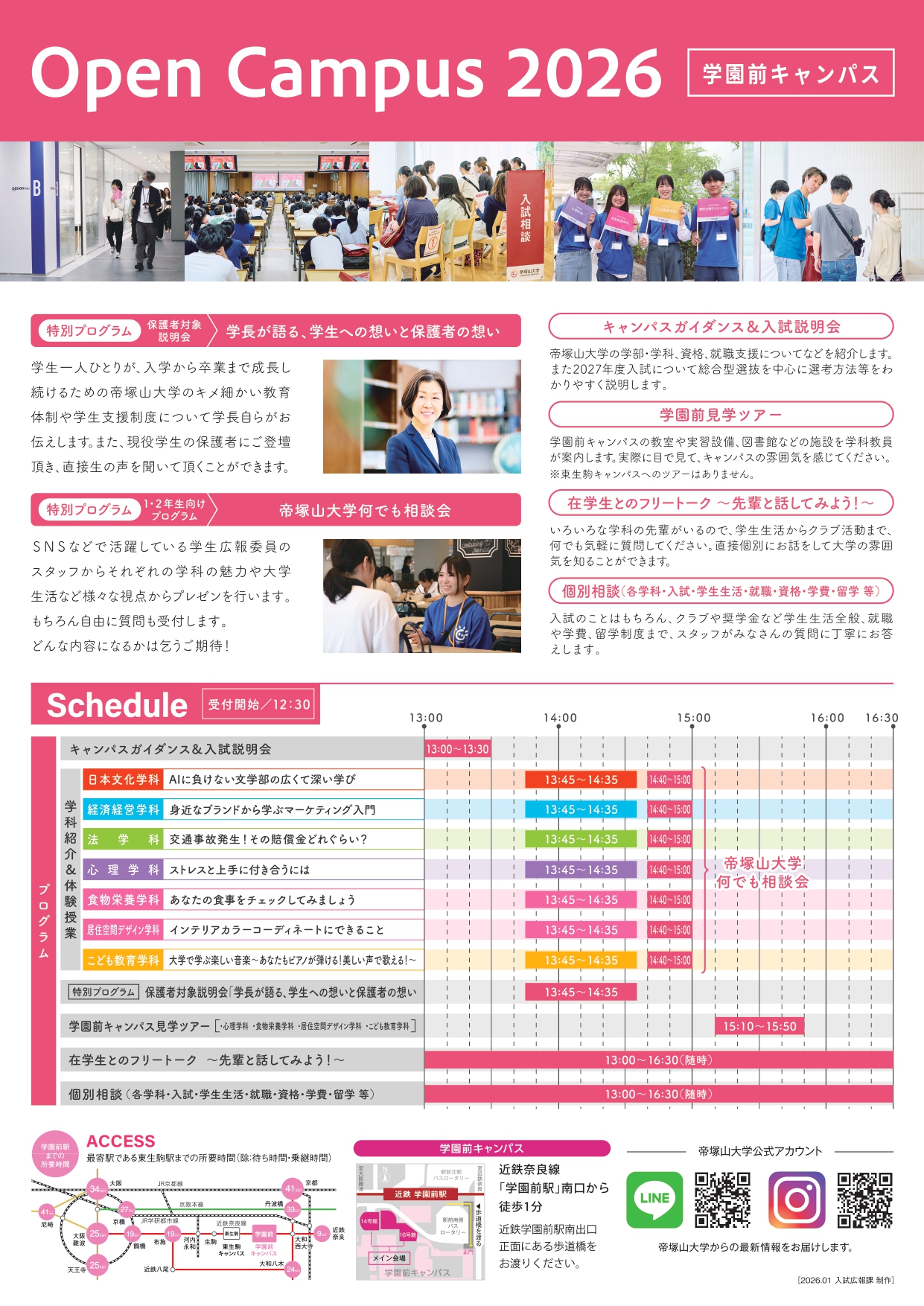 現役帝塚山大学の学生から学生生活や授業のことまで様々な視点からプレゼンいたします。