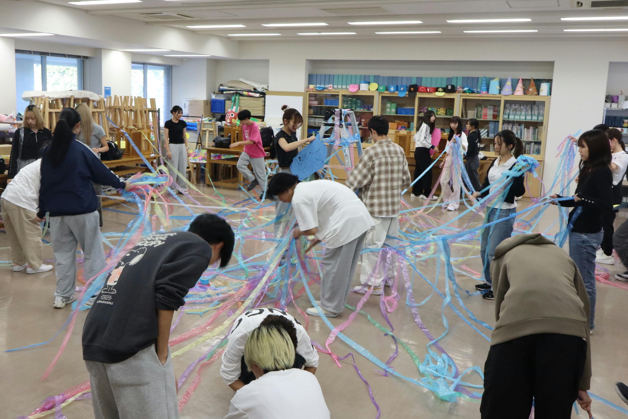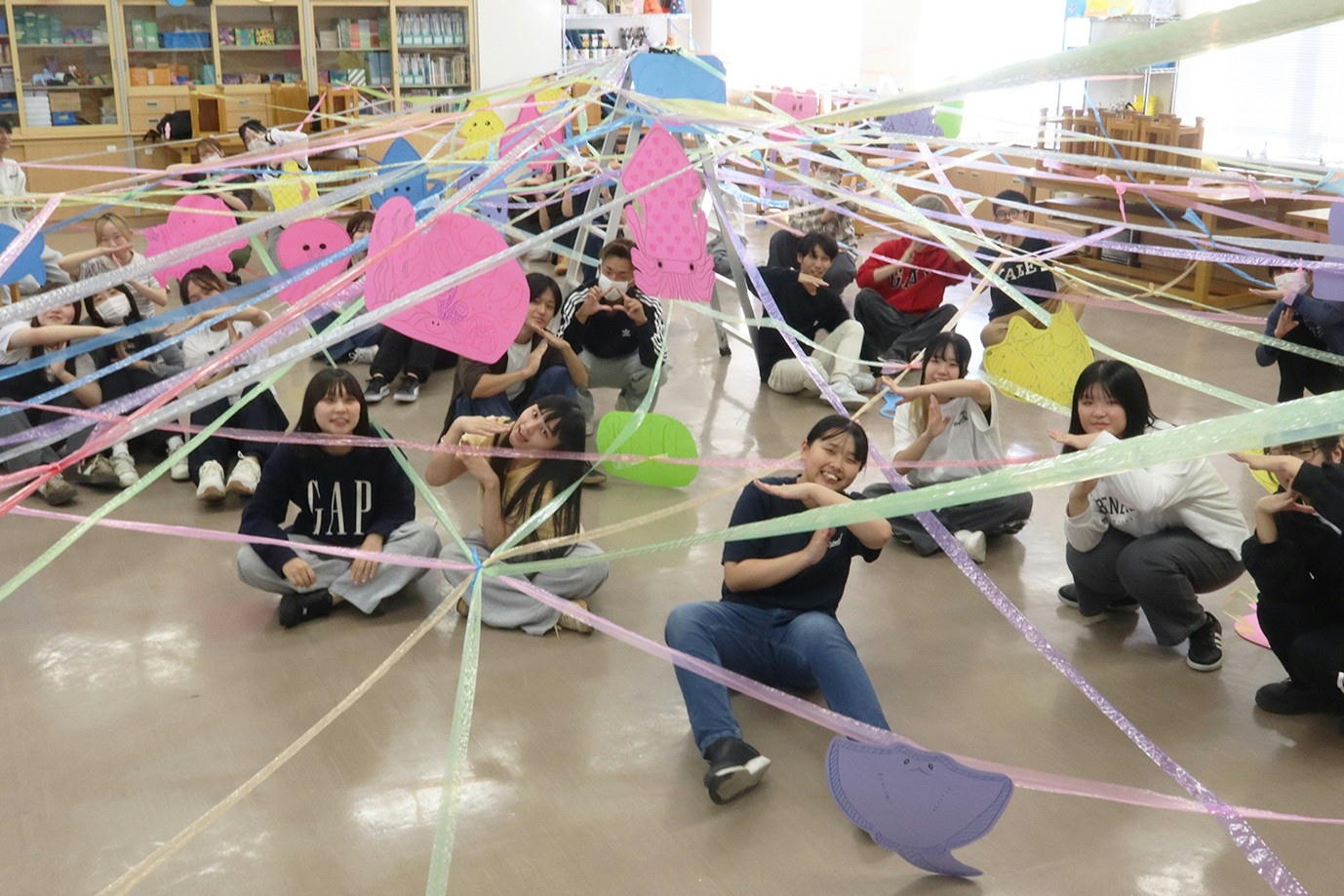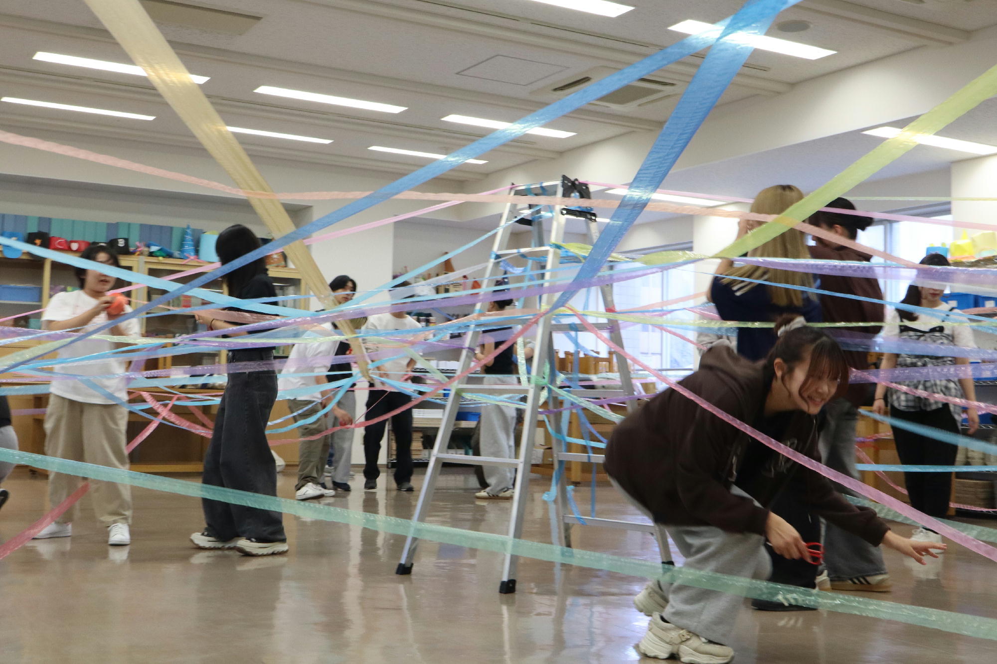 【こども教育学科】芸術の秋、教室いっぱいに広がる「蜘蛛の巣アート」!