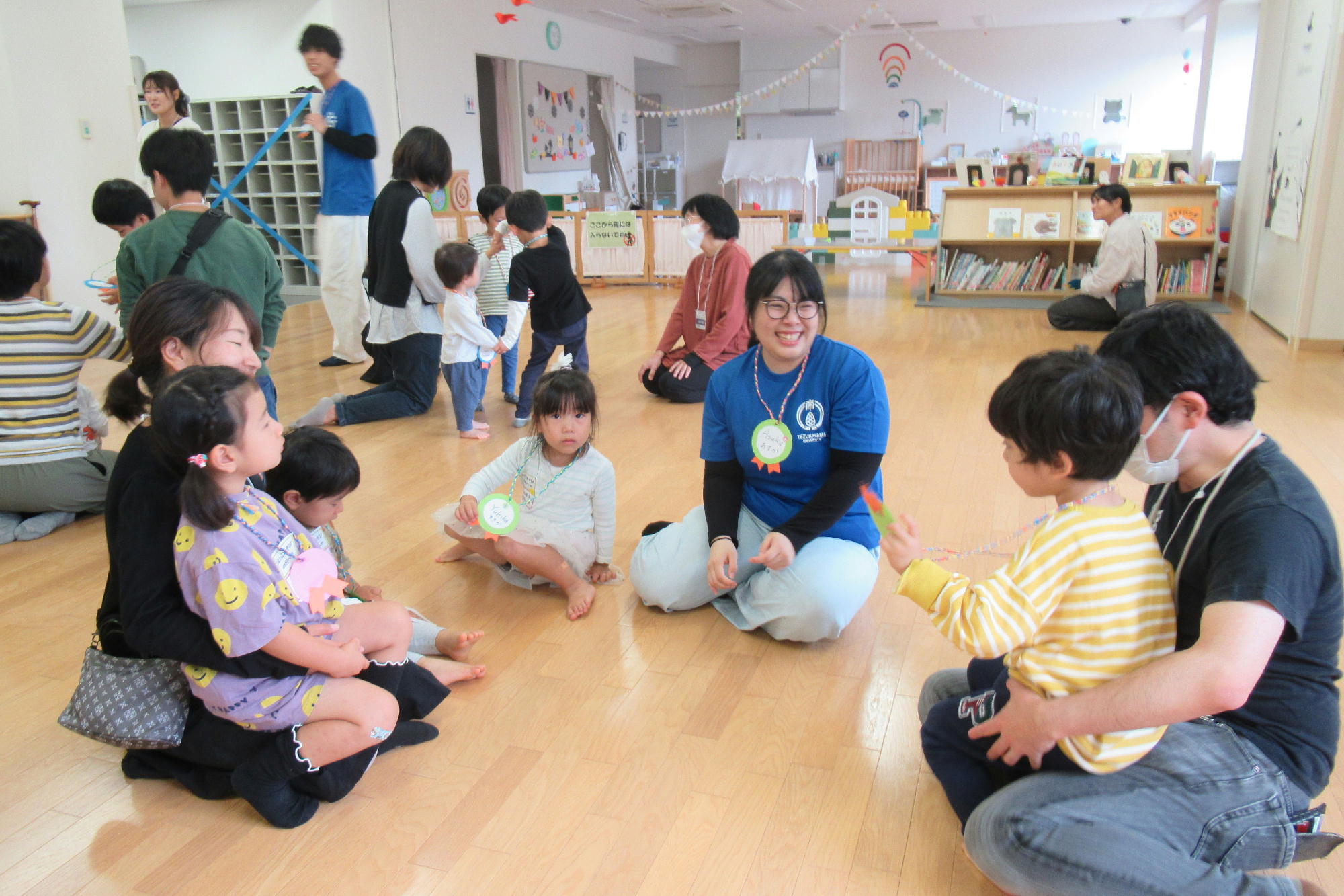 ネームカードの色ごとにグループを作って、みんなで笑顔で過ごす様子に、スタッフも思わずにっこり。
