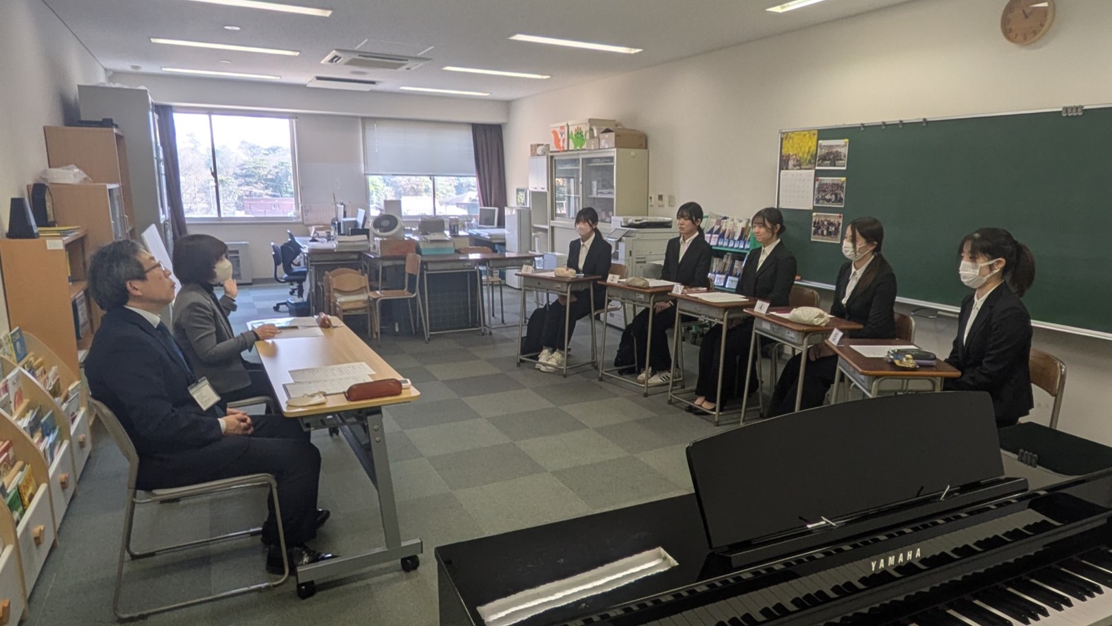 3年生の後期(9月)から採用試験が終わるまで、しっかりと時間をかけて、個別面接や集団面接の練習、模擬授業の指導などに取り組みます。