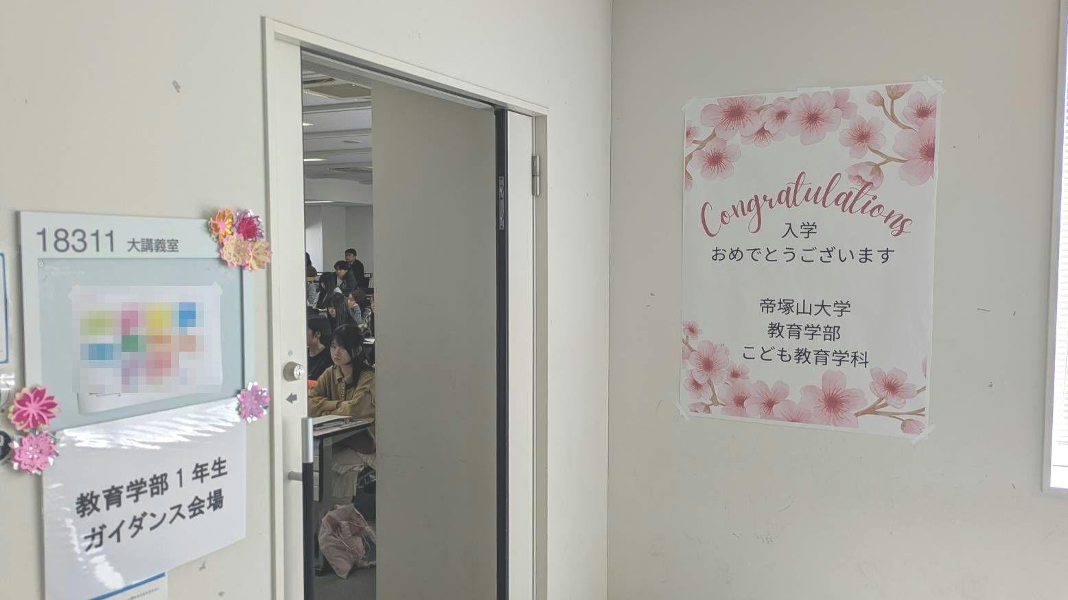 4月1日、入学式を終えた後、教育学部の新入生は18号館へ移動しました。