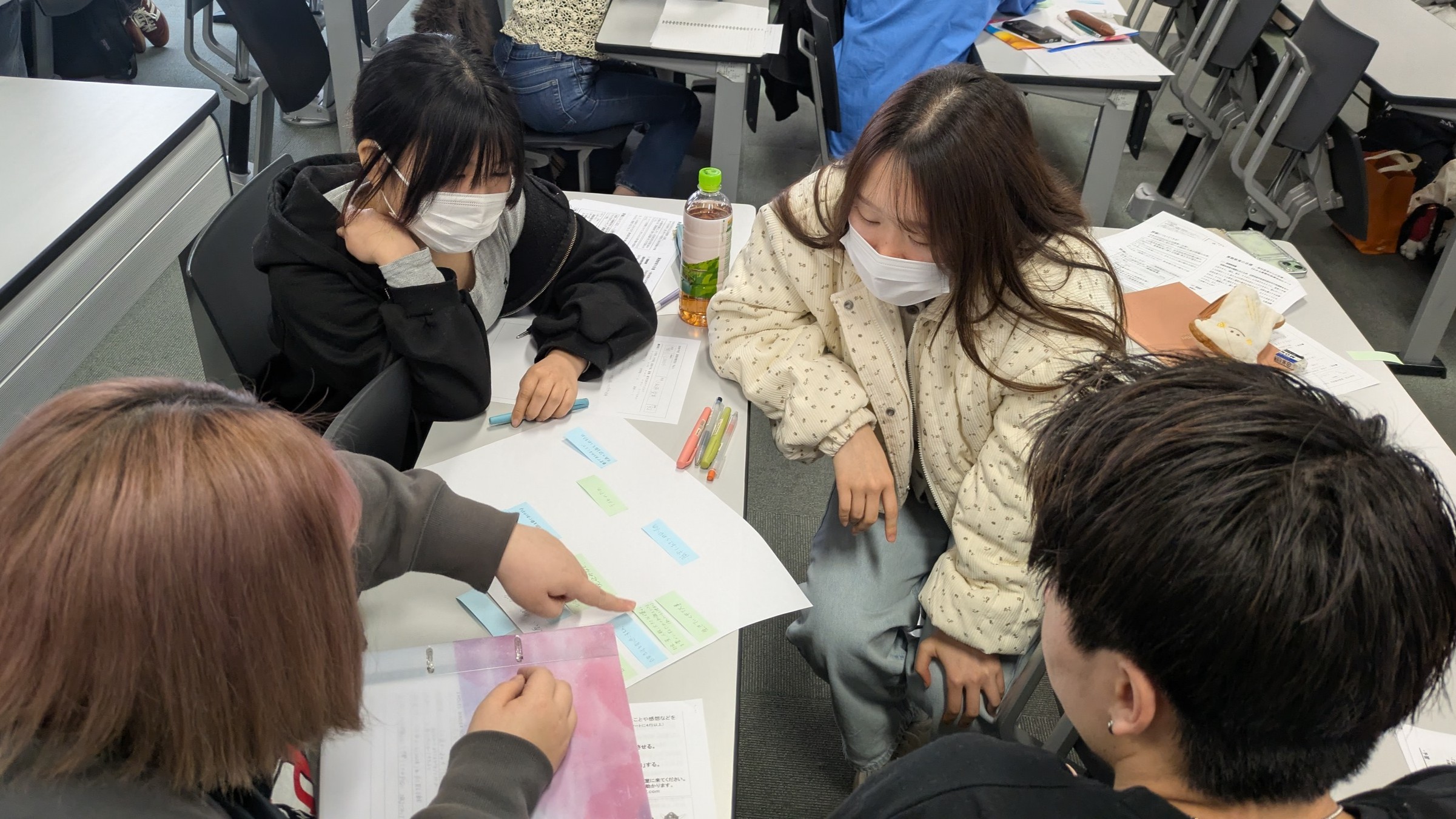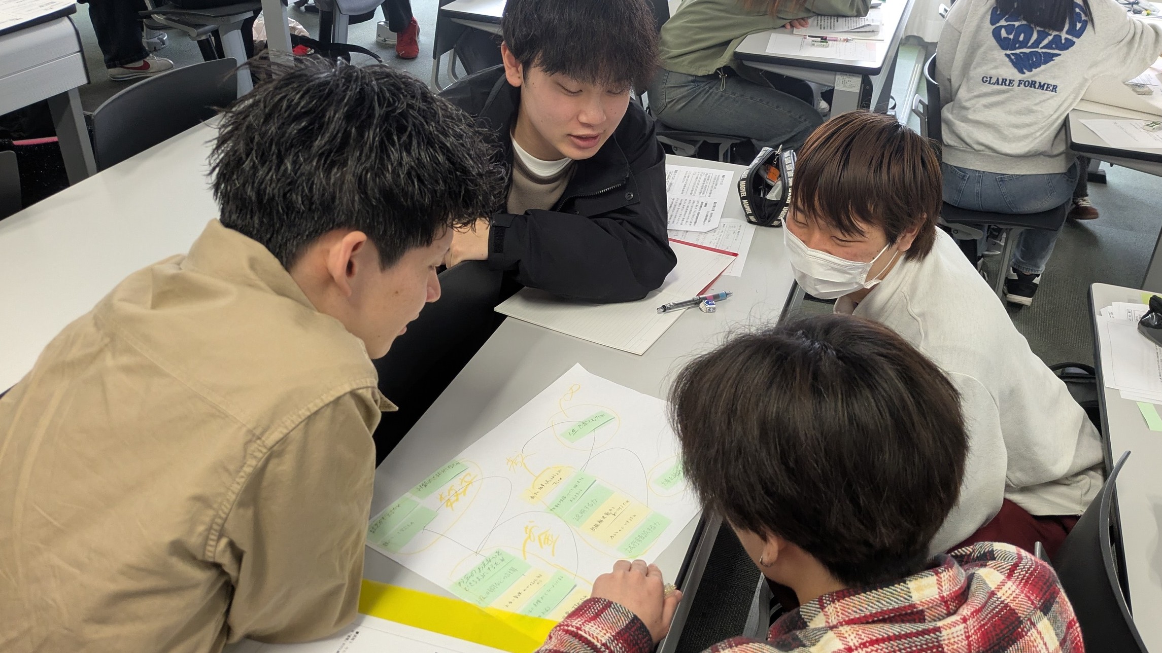 まずは一人で考え、その後グループで意見を共有します。