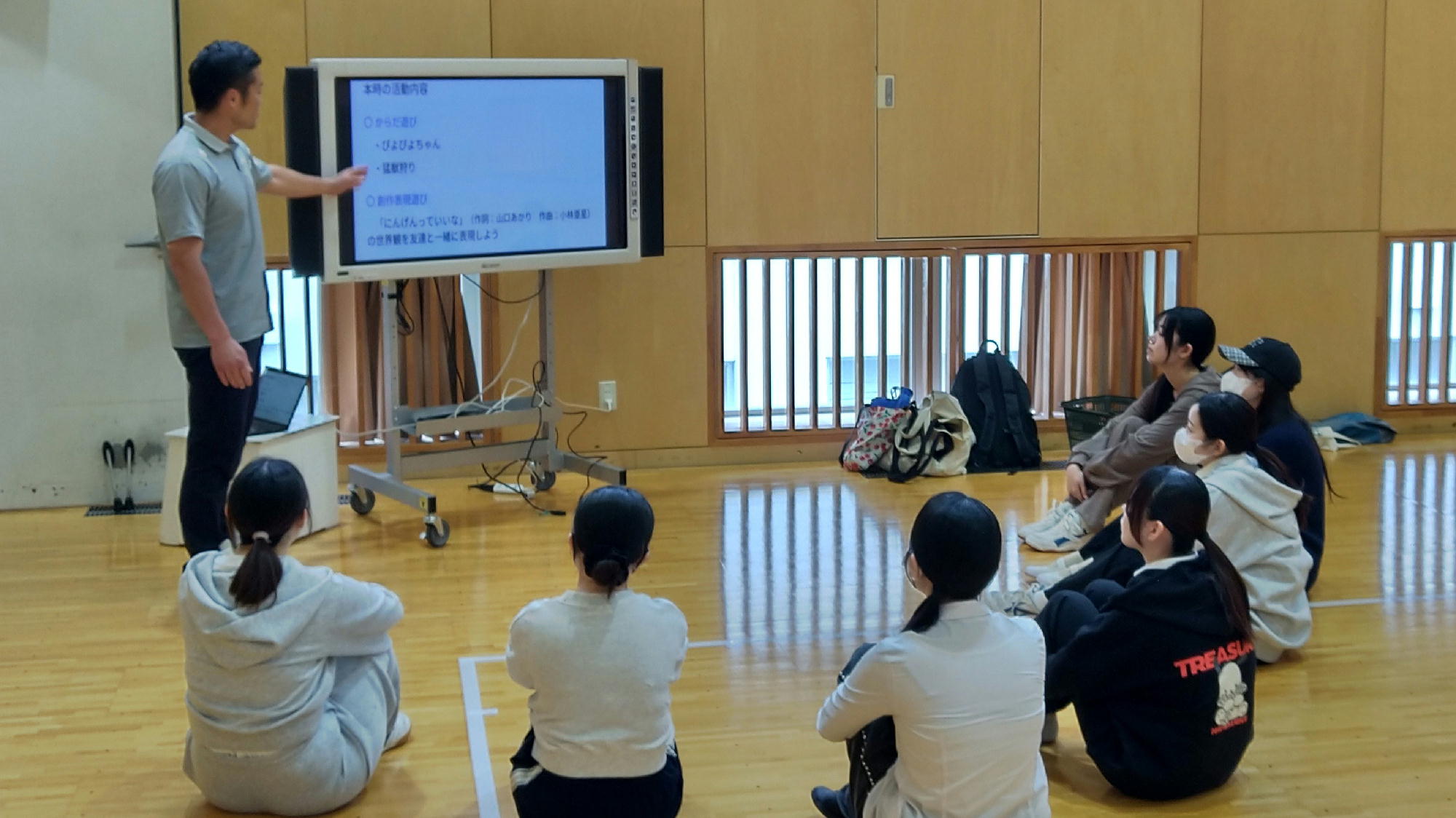 活動では、子どもにとっての「よきモデル」となることを意識しながら、実際に体を動かして学ぶことで、表現あそびの広がりや構想する力を育んでいきました。