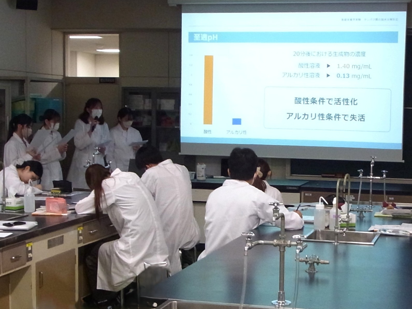 【食物栄養学科】 「基礎栄養学実験」で実験結果発表会を行いました!