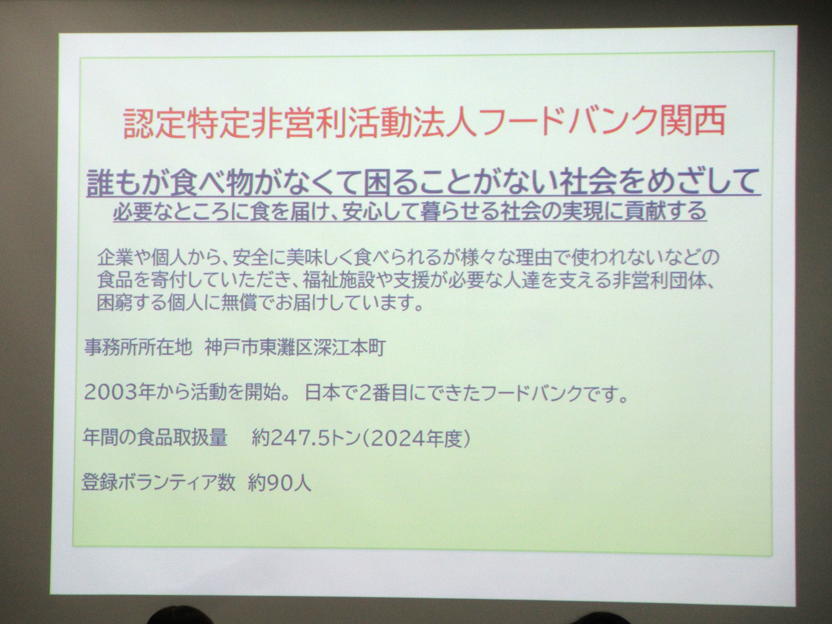 【食物栄養学科】認定特定非営利活動法人「フードバンク関西」の特別講義を受講