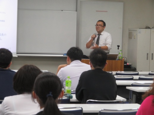 交流会では、修了生の方々からゲストスピーカーをお招きし、前半は公認心理師・臨床心理士試験体験談を、後半は現場報告や研究成果報告などをしていただいていますが、今年の前半は川村結華さん(第17期修了生)が務め、出題のポイントや受験のコツなどについてお話しをしていただき、現役大学院生をはじめ出席者のみなさんは熱心に耳を傾けていました。