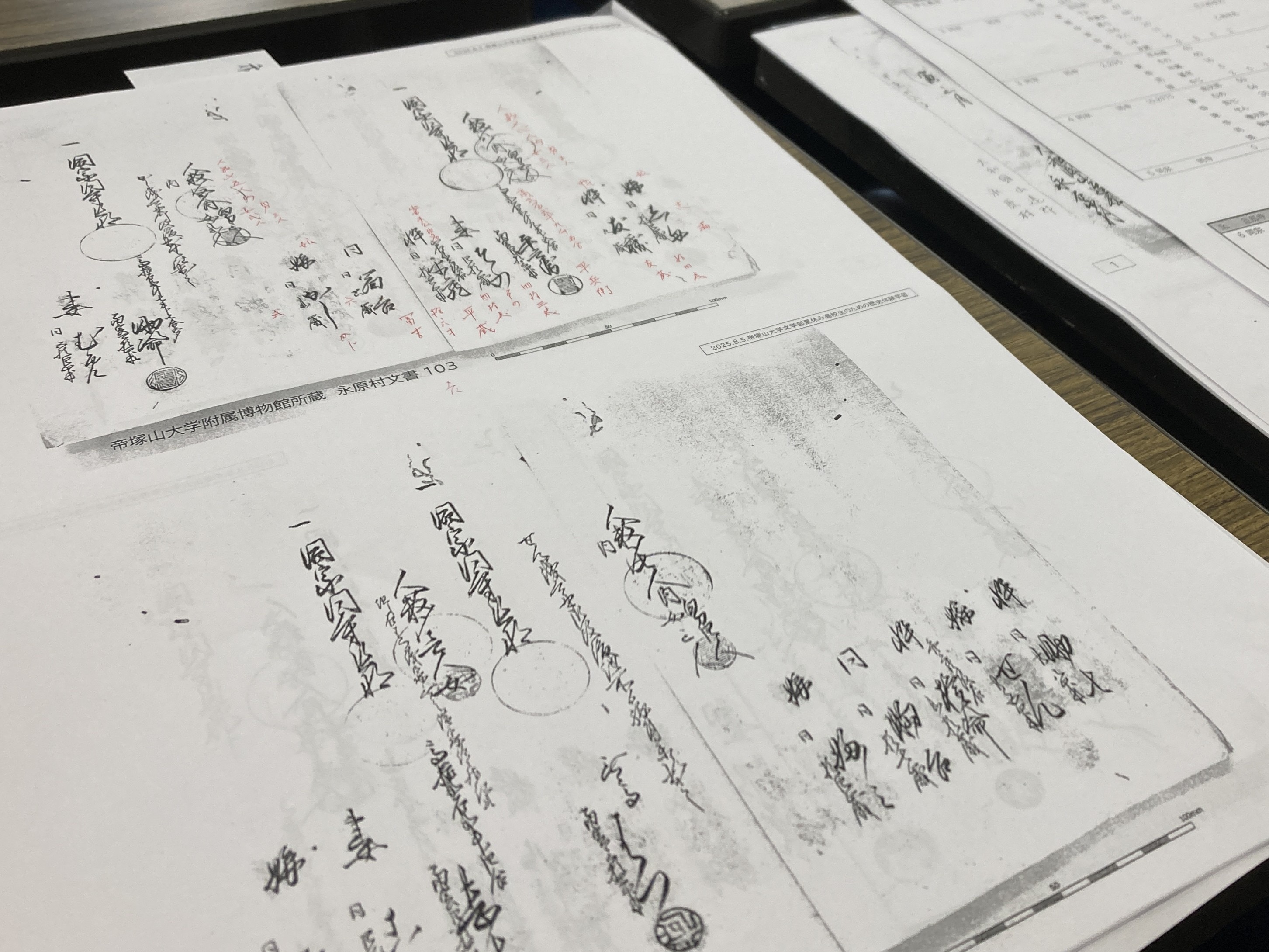 この歴史体験学習は、オープンキャンパスよりもっと深く、大学での学びを感じてもらおうと企画しているもので、今回は、近世史の岡島永昌准教授が講師となり、古文書を読むことを基本とする体験をしていただきました。