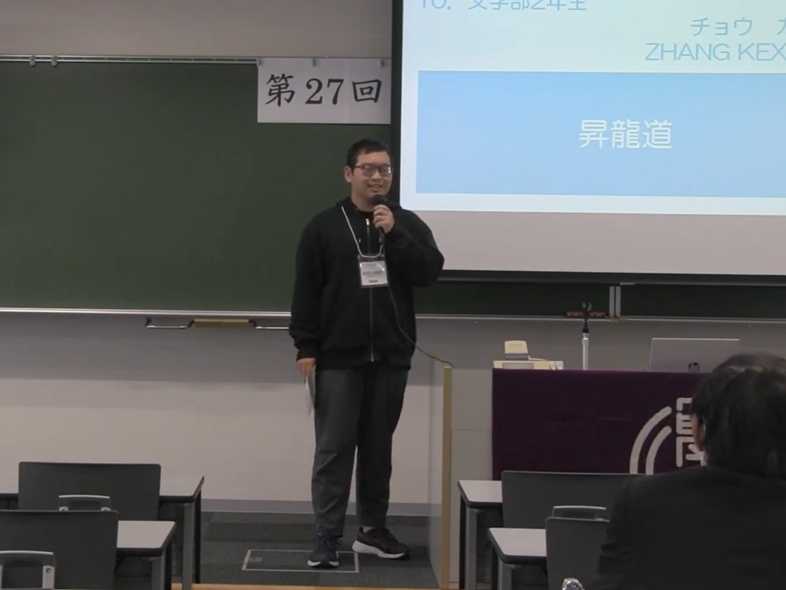 虹色祭初日の11月15日(土)に開催されたスピコンでは各学部学科から12名の留学生がエントリー、本学科からは3名の留学生が出場しました。どの留学生も、様々な工夫をこらしながら、日々の生活のなかで感じていること、考えていることを上手に言葉にしていました。