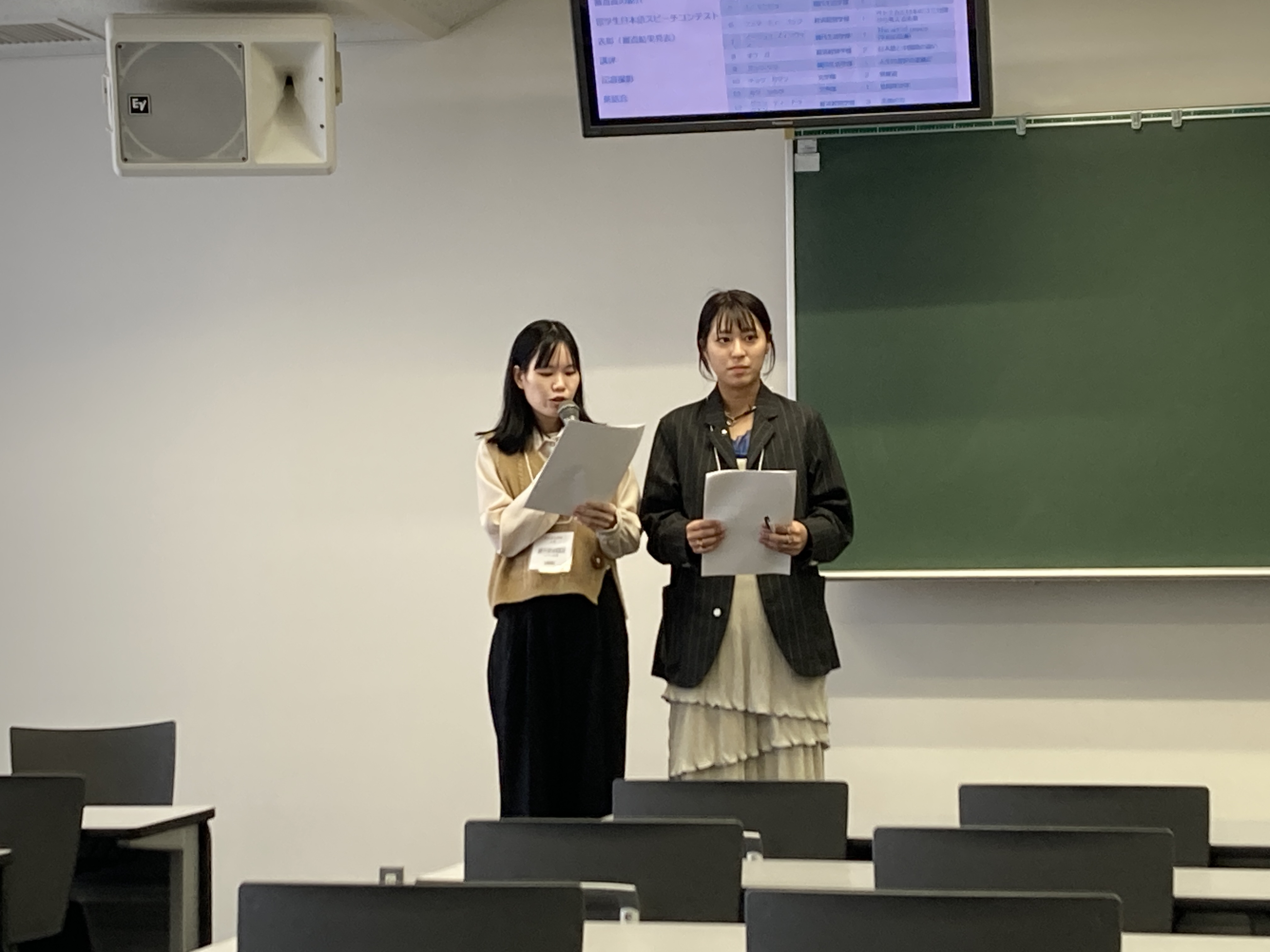 虹色祭初日の11月15日(土)に開催されたスピコンでは各学部学科から12名の留学生がエントリー、本学科からは3名の留学生が出場しました。どの留学生も、様々な工夫をこらしながら、日々の生活のなかで感じていること、考えていることを上手に言葉にしていました。