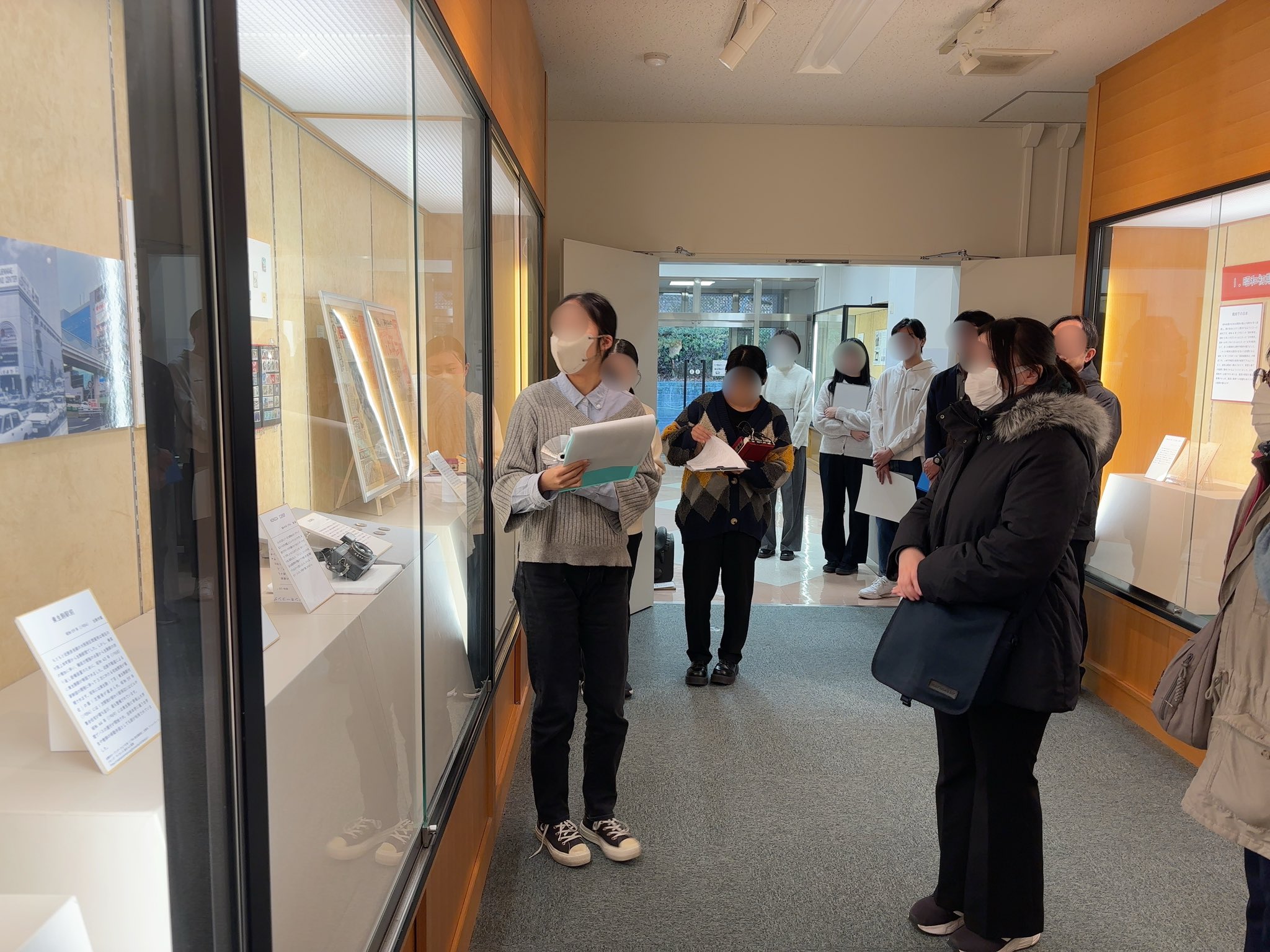 実習生たちが展示に沿いながら分担し、しっかり下準備した成果を惜しみなく披露していました。聞いているうちに引き込まれて、「なるほど、その資料はそんな意味もあったのか」と展示資料をじっくり見直したりすることもありました。 展示室は広いスペースではありませんが、コンパクトに、それでいてうまくバランスが取れたとても良い展示となっています。