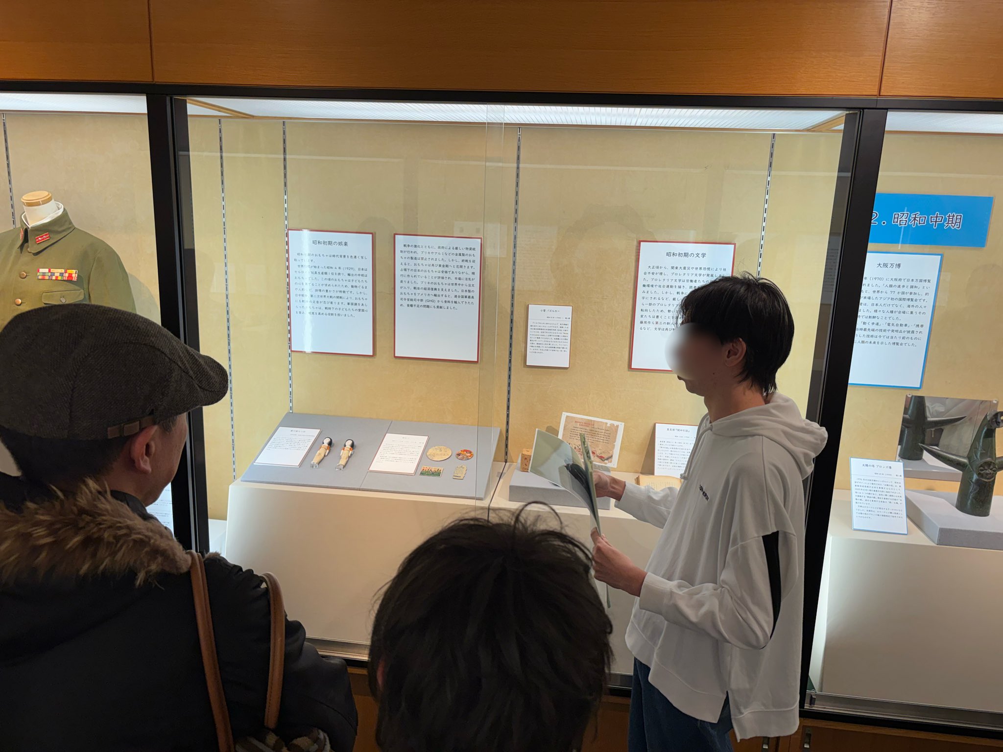 現在、本学附属博物館では、第18回博物館実習生による企画展「昭和64年の歩みー出来事と娯楽で振り返る世相ー」が開催中です。 この企画展は博物館実習生だけで企画から展示、広報まですべてを担うというもので、1/24(土)には、実習生たちが来館者向けに展示解説を行いました。