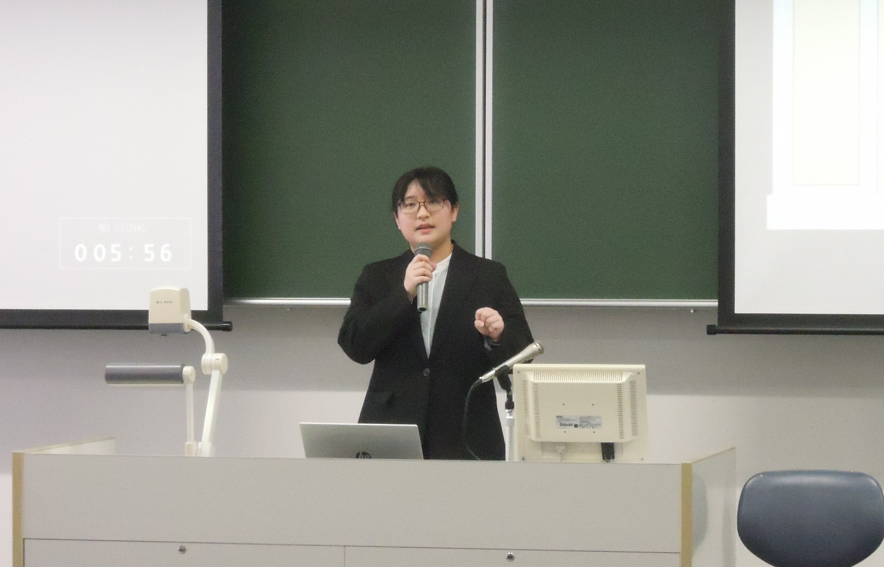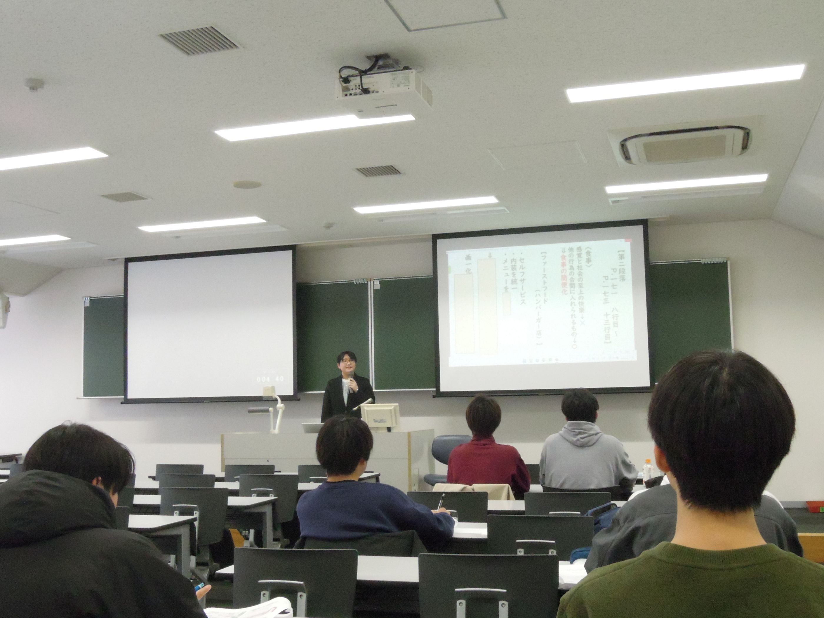 最初に大阪府中学国語に合格した4年生が、教職課程の履修や教育実習、教員採用試験対策にどのように取り組んだかについて報告しました。