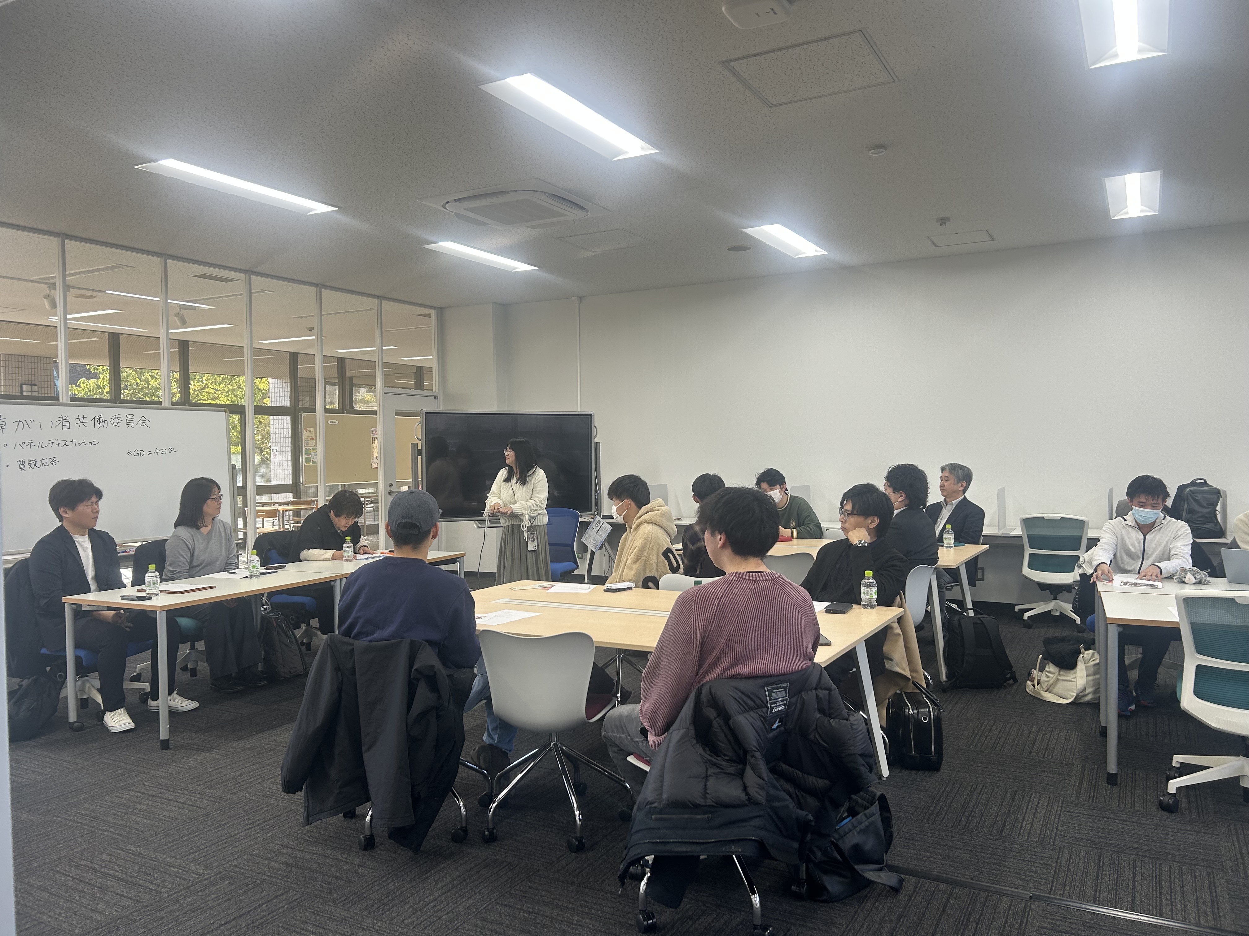 12月19日に実施された「特殊講義(実践的中小企業経営)」では、3名の経営者を講師にお迎えし、パネルディスカッションを行いました。登壇されたのは、介護事業を営む「ていくあい」の代表取締役・竹村ひとみ氏、障がい年金請求を支援する「しのぶ社労士事務所」の信夫将恵氏、そしてデザイン業を手がける株式会社epoの辻哲治氏です。