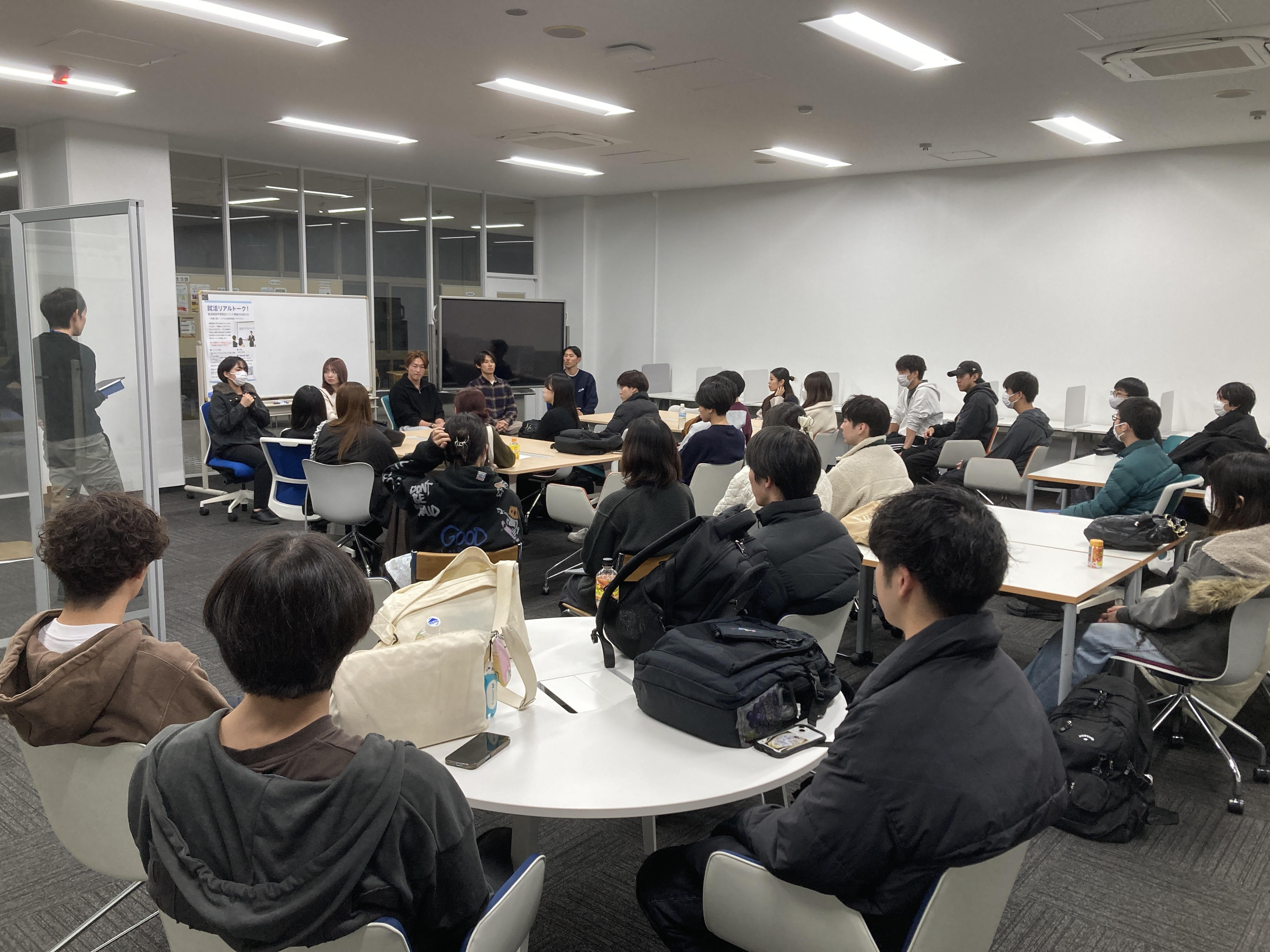 経済経営学部では、就職活動を終えた4年生の協力を得て、2・3年生に向けた就活体験共有イベント「就活リアルトーク」を開催しました。