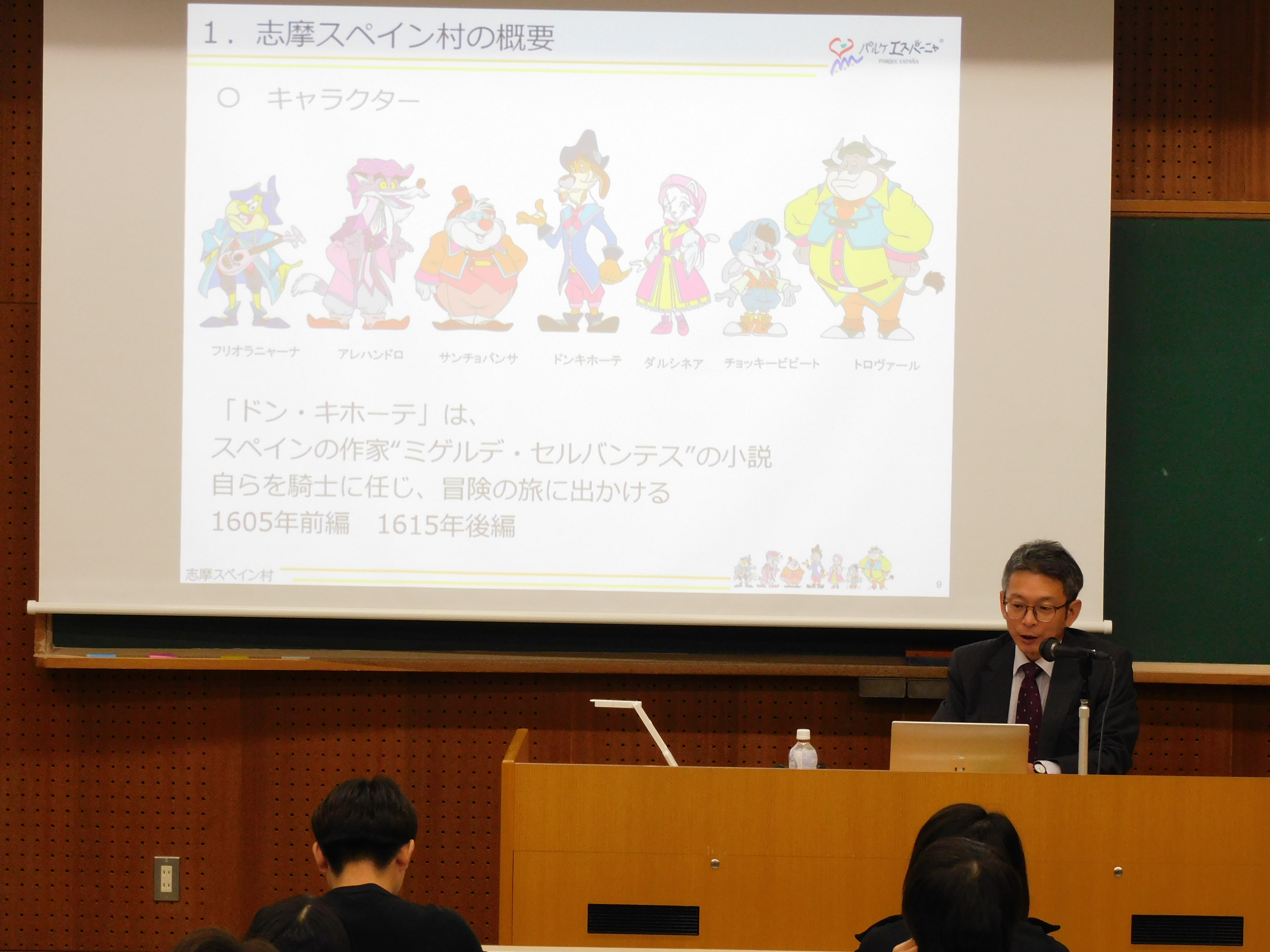 第9回目の講義では、株式会社志摩スペイン村営業企画部の小林昭夫氏をお招きし、「地方テーマパークの現状と今後」をテーマに講義をしていただきました。講義内容としては、志摩スペイン村の概要、テーマパークと遊園地の違い、志摩スペイン村における反転攻勢の取り組み、そして今後の展望についてご説明いただきました。