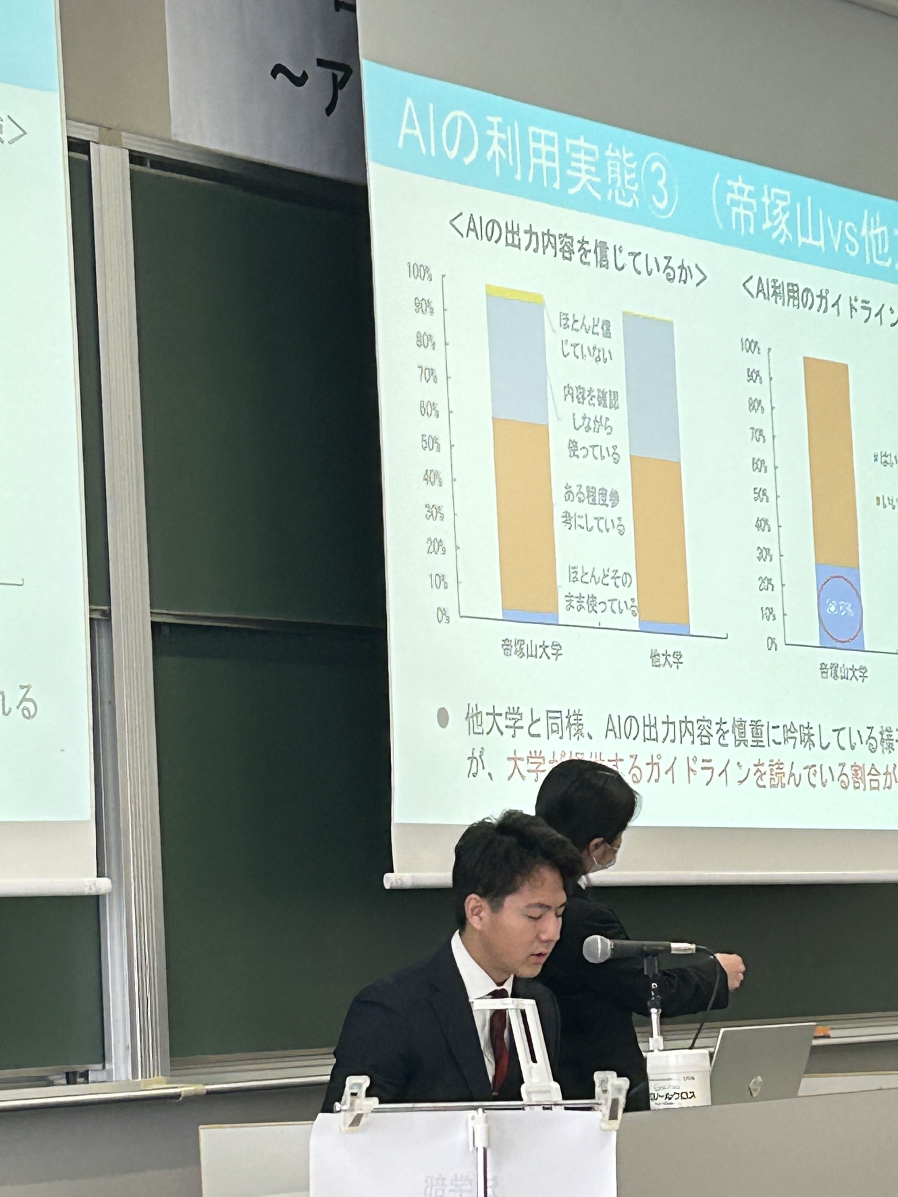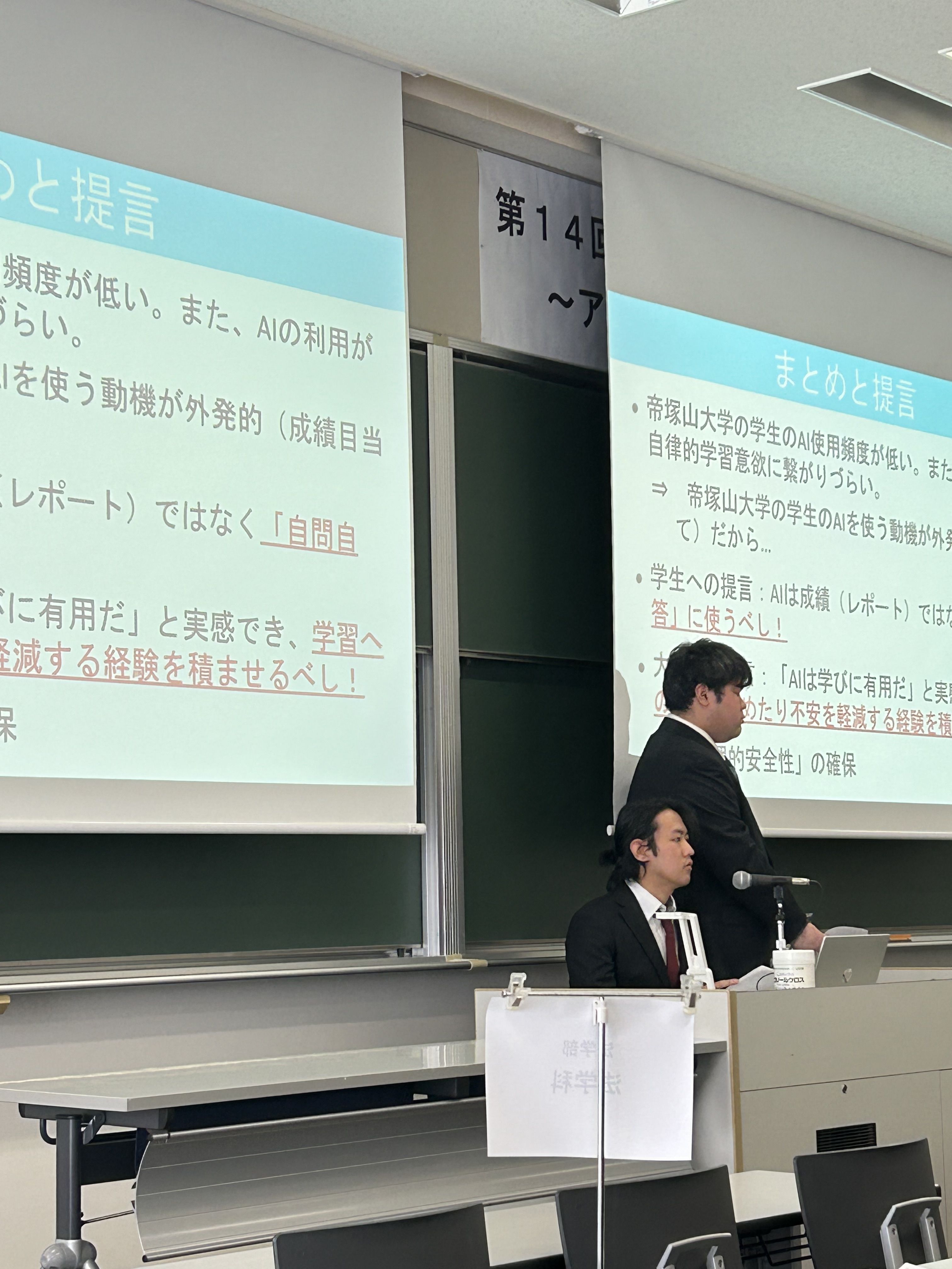 今回の発表は、データに基づき学生のAI利用とその効果を客観的に捉え、具体的な提案を提示した非常に実践的な内容でした。経済経営学部では、今後も社会の変化に伴う課題や疑問に関する研究と実践を積み重ねていきます!