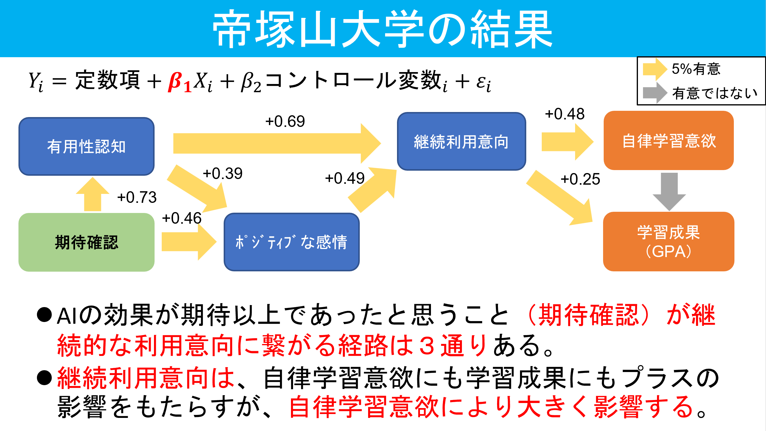 定量的な分析の結果、学生のAI利用には以下のような効果があることが明らかになりました。