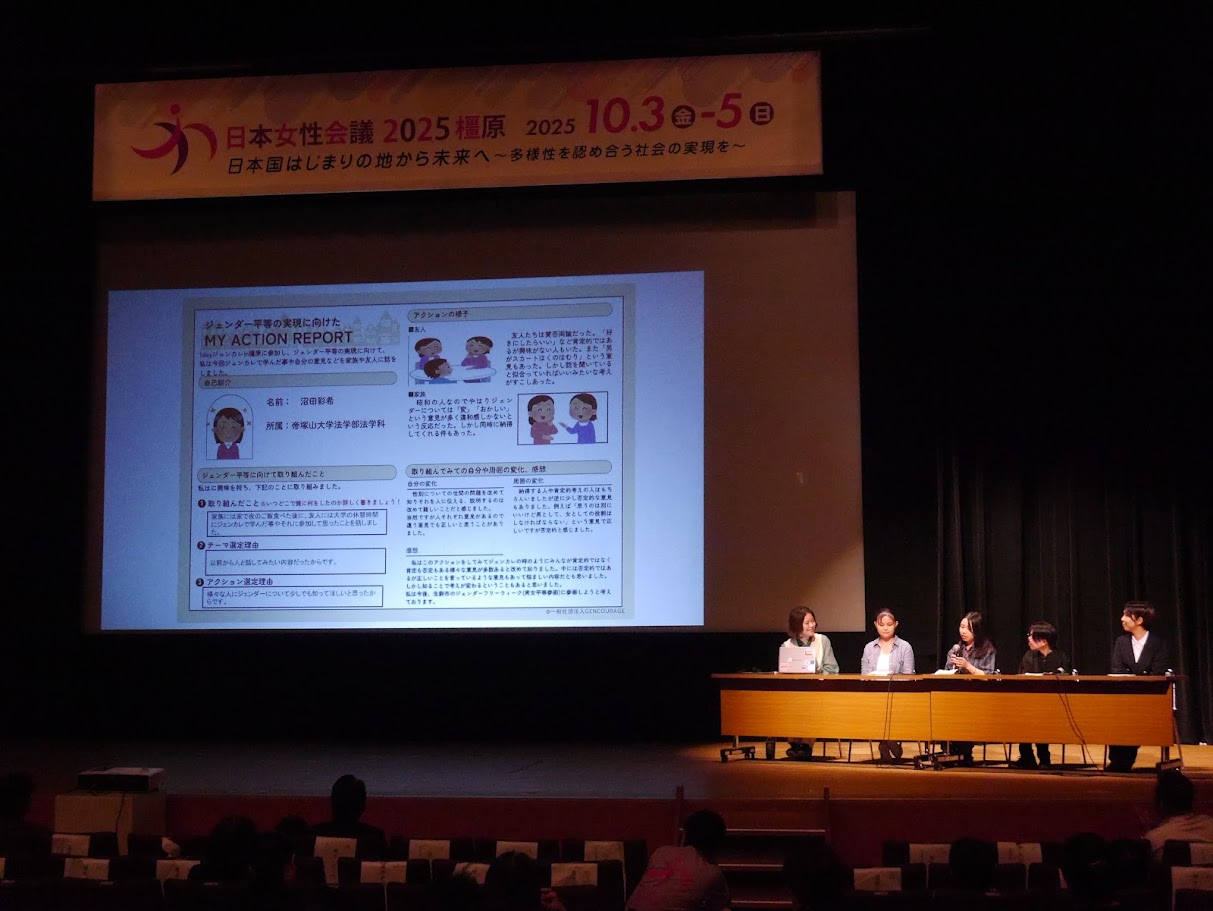 【法学部】「日本女性会議2025橿原」に学生が登壇「ジェンダーギャップを考えるカルタ」制作メンバーが行動変容を発表