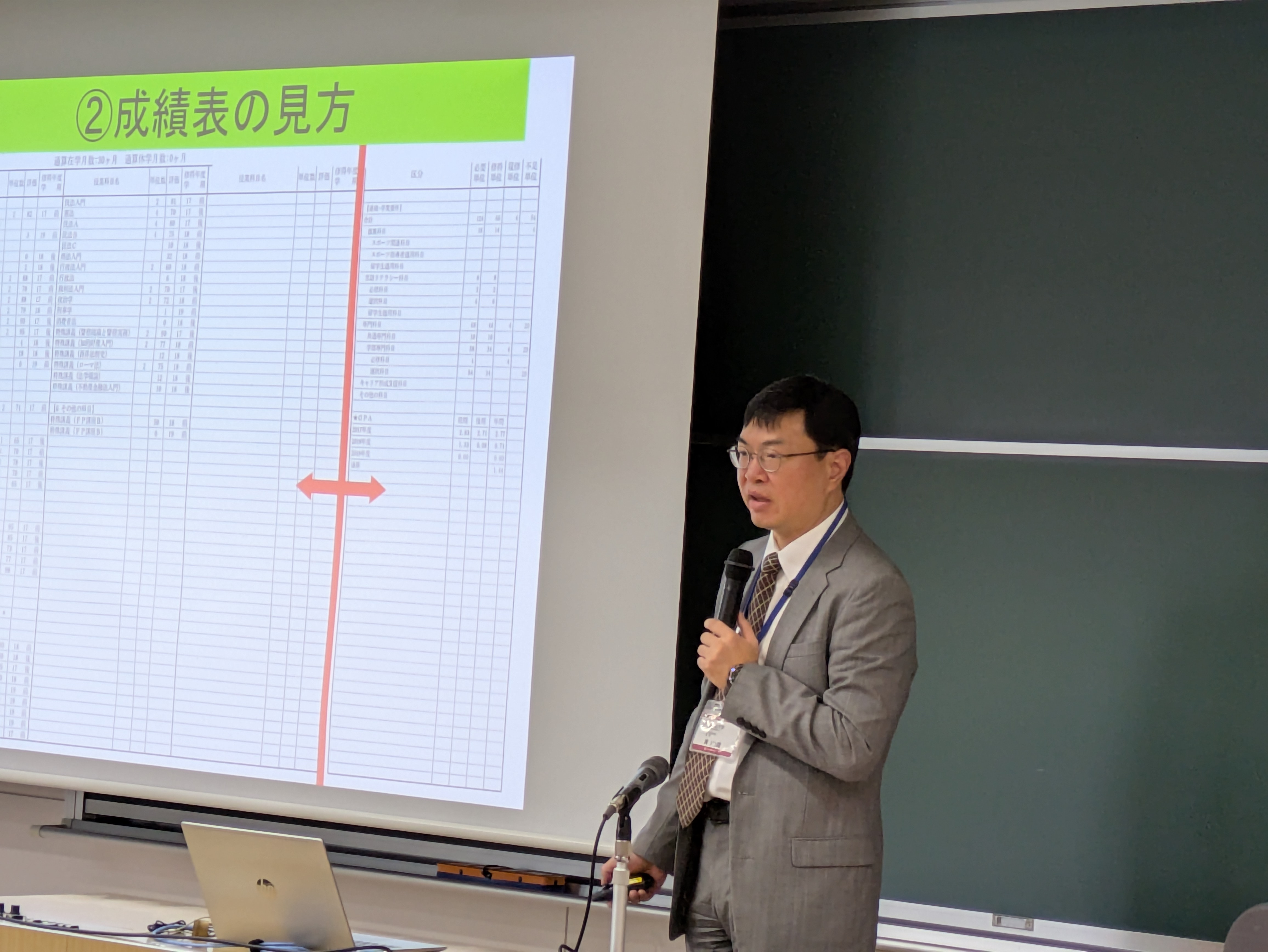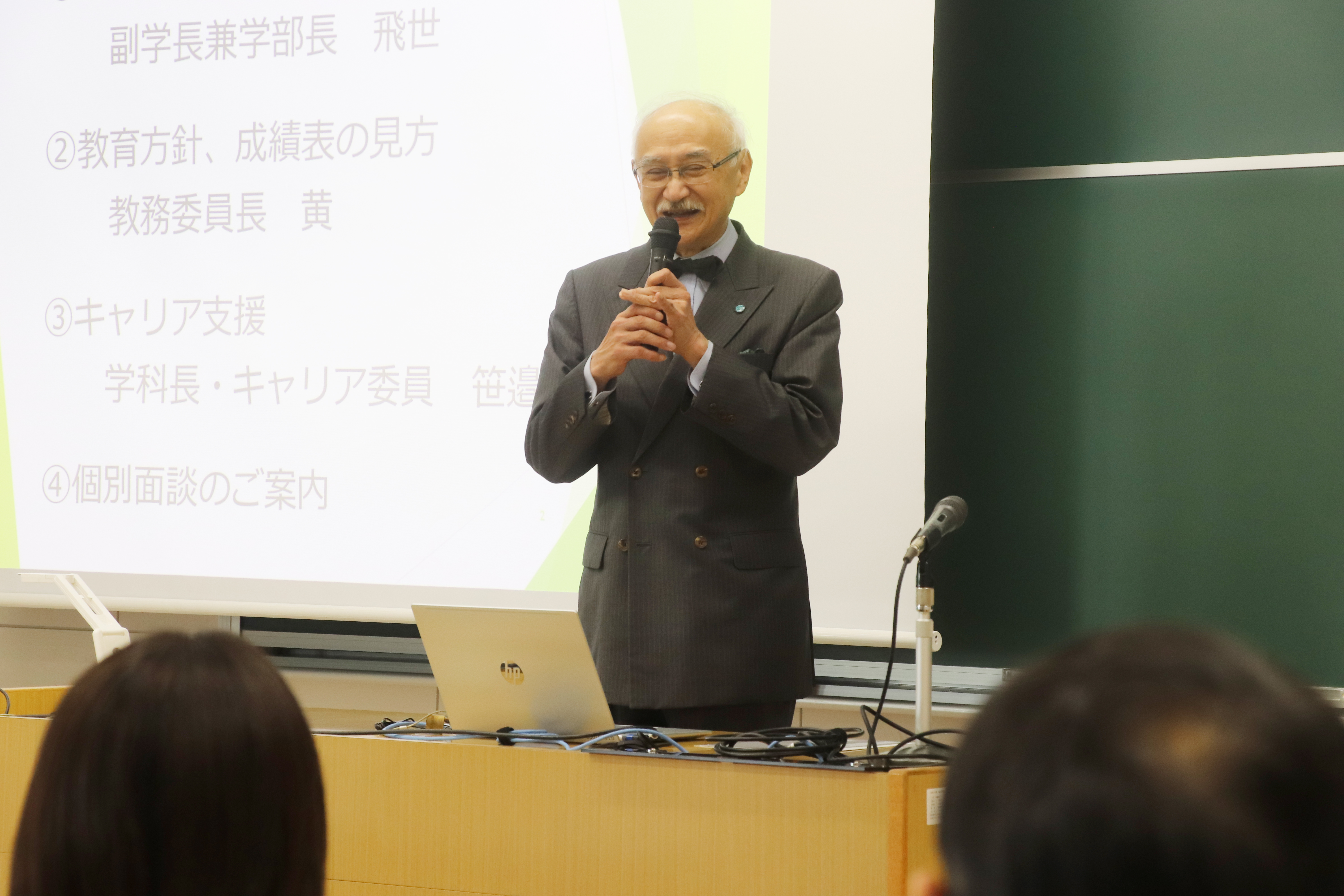 さらに、黄教務委員長からは成績の見方など教務関係の説明があったほか、笹邉学科長より法学部の進路状況や就職支援等について、きめ細やかな指導の現状について報告がありました。