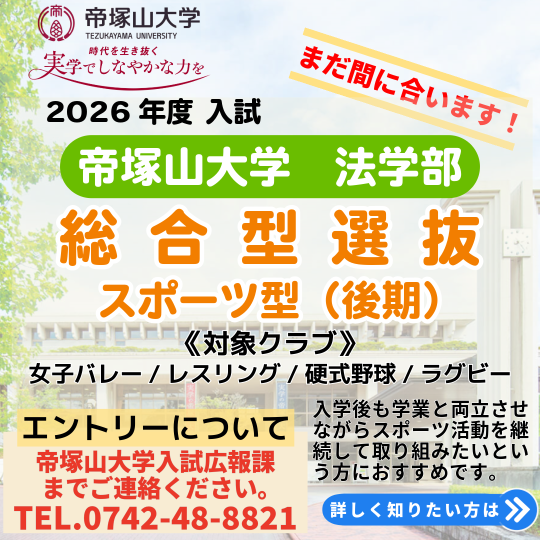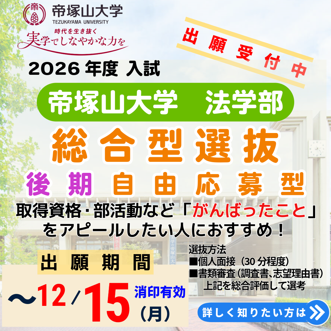 【法学部】入試情報:総合型選抜・後期(自由応募型・スポーツ型)の出願受付が始まっています!