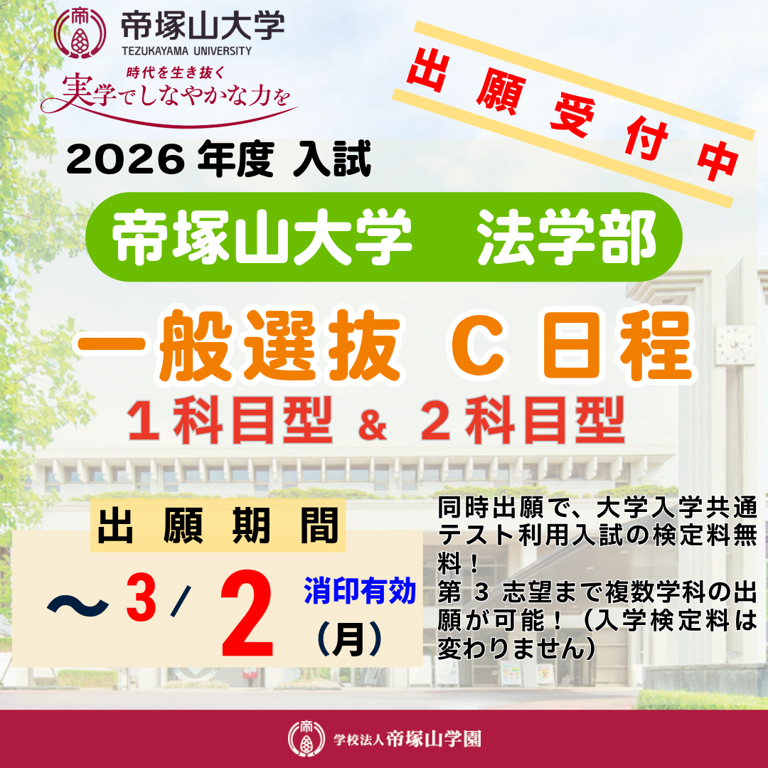 【法学部】入試情報:一般選抜C日程の出願受付が始まっています!