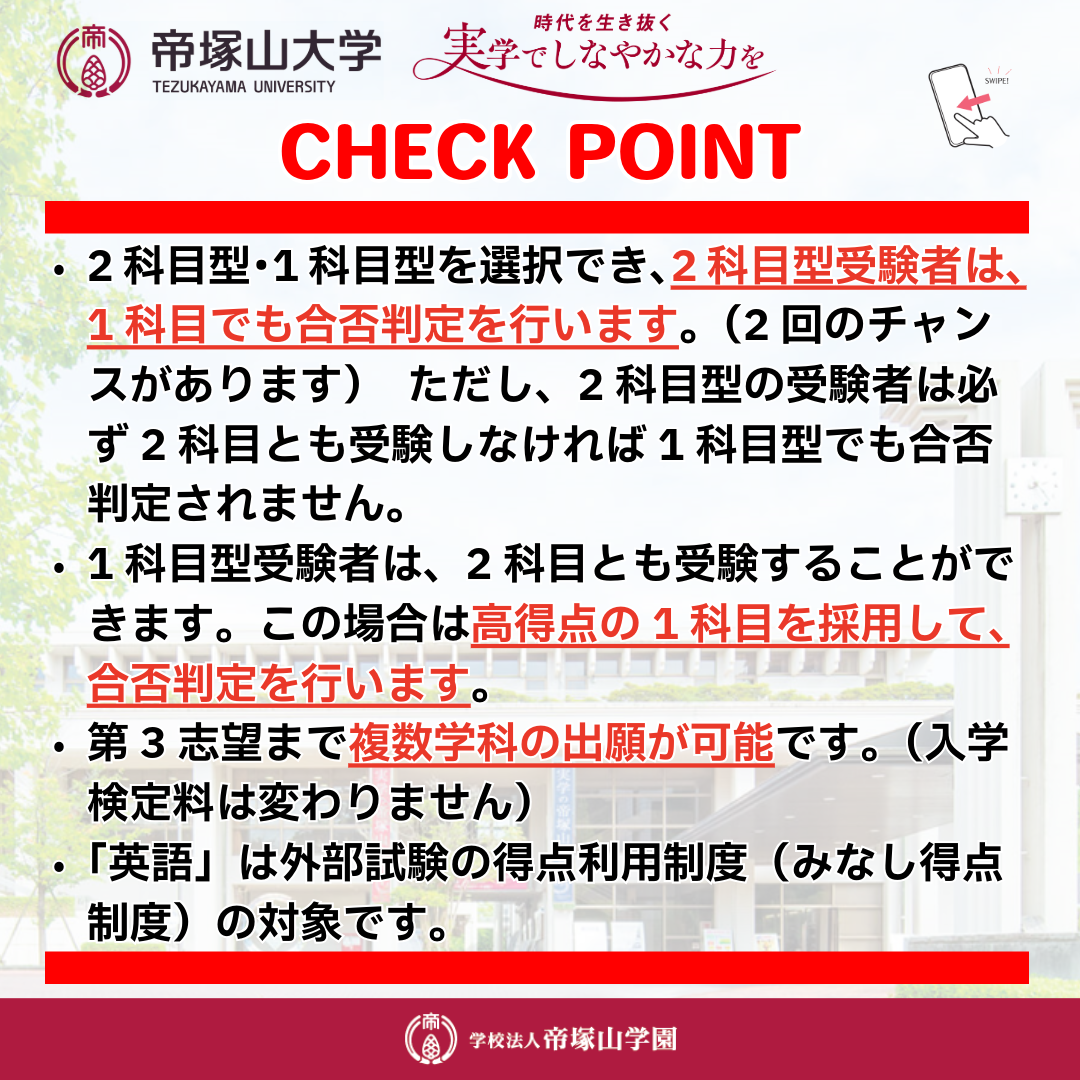 この入試に同時出願で、検定料無料にて[大学入学共通テスト利用入試 後期]も併せて受験できます!!