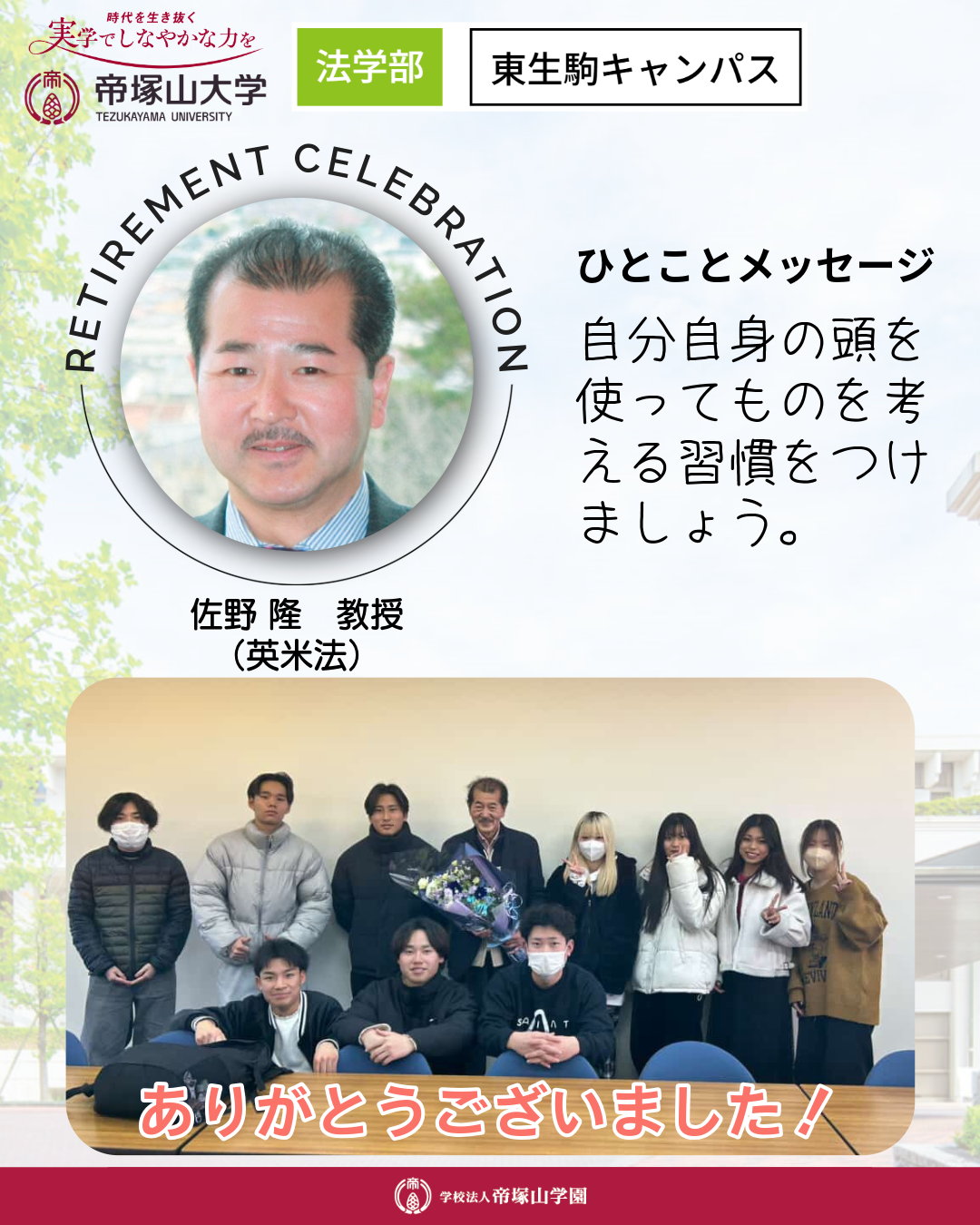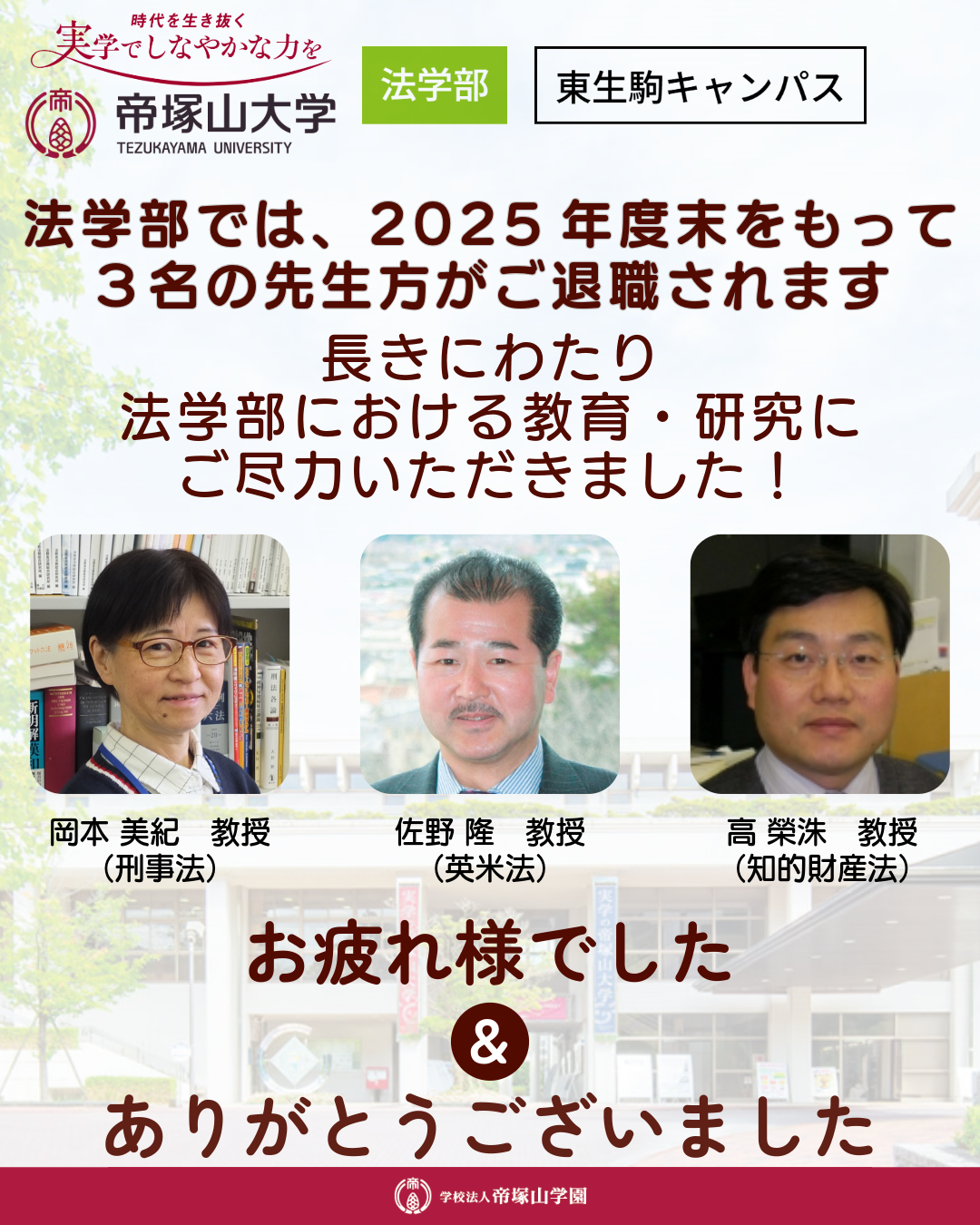長きにわたり法学部における教育・研究にご尽力いただきました!