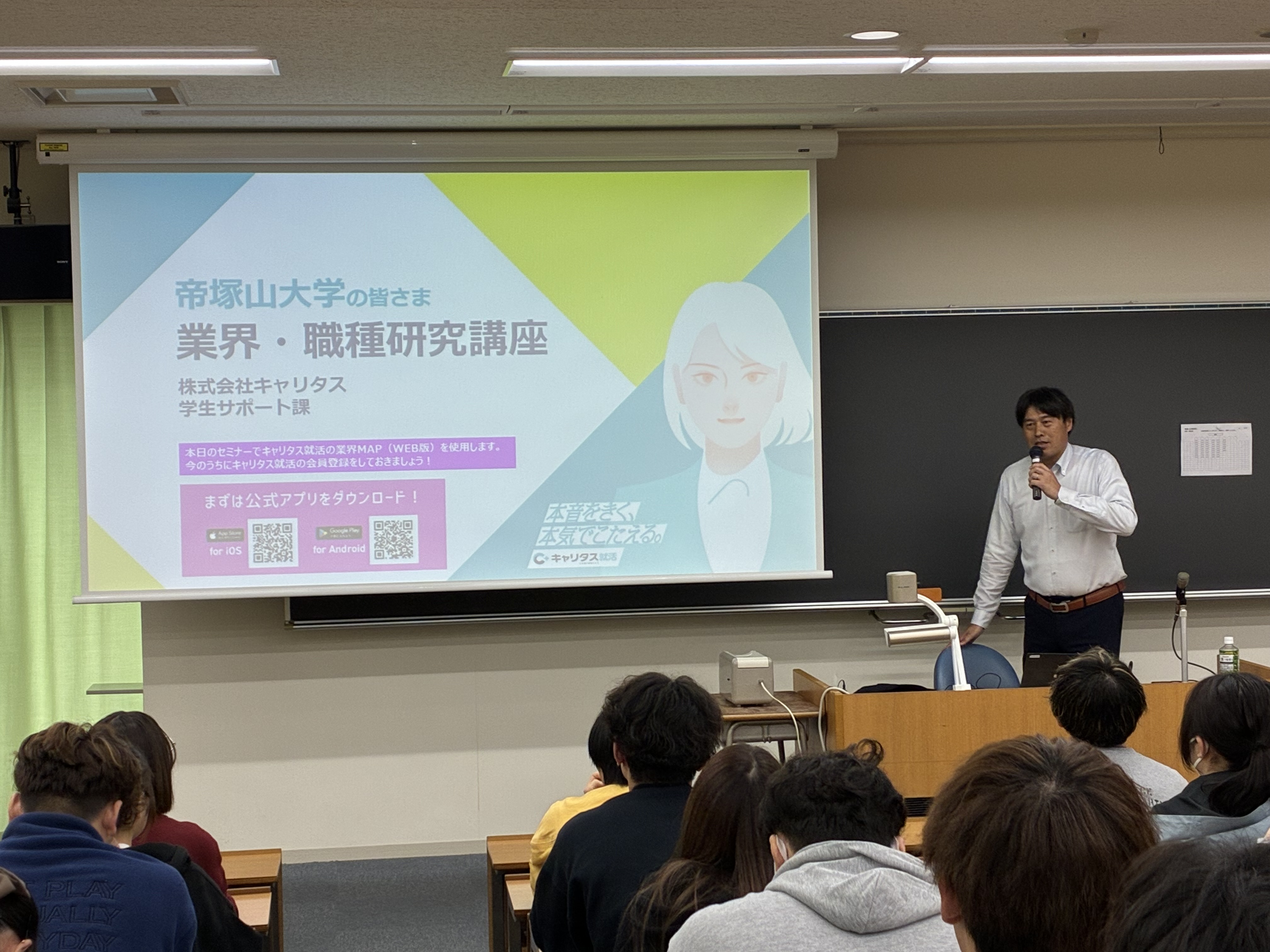 本講義では、学生の就職先として期待される優良企業の人事担当者を招き、業界の動向や企業の特徴、業務内容に加え、就職活動に関する実践的なアドバイスについて講義を行います。