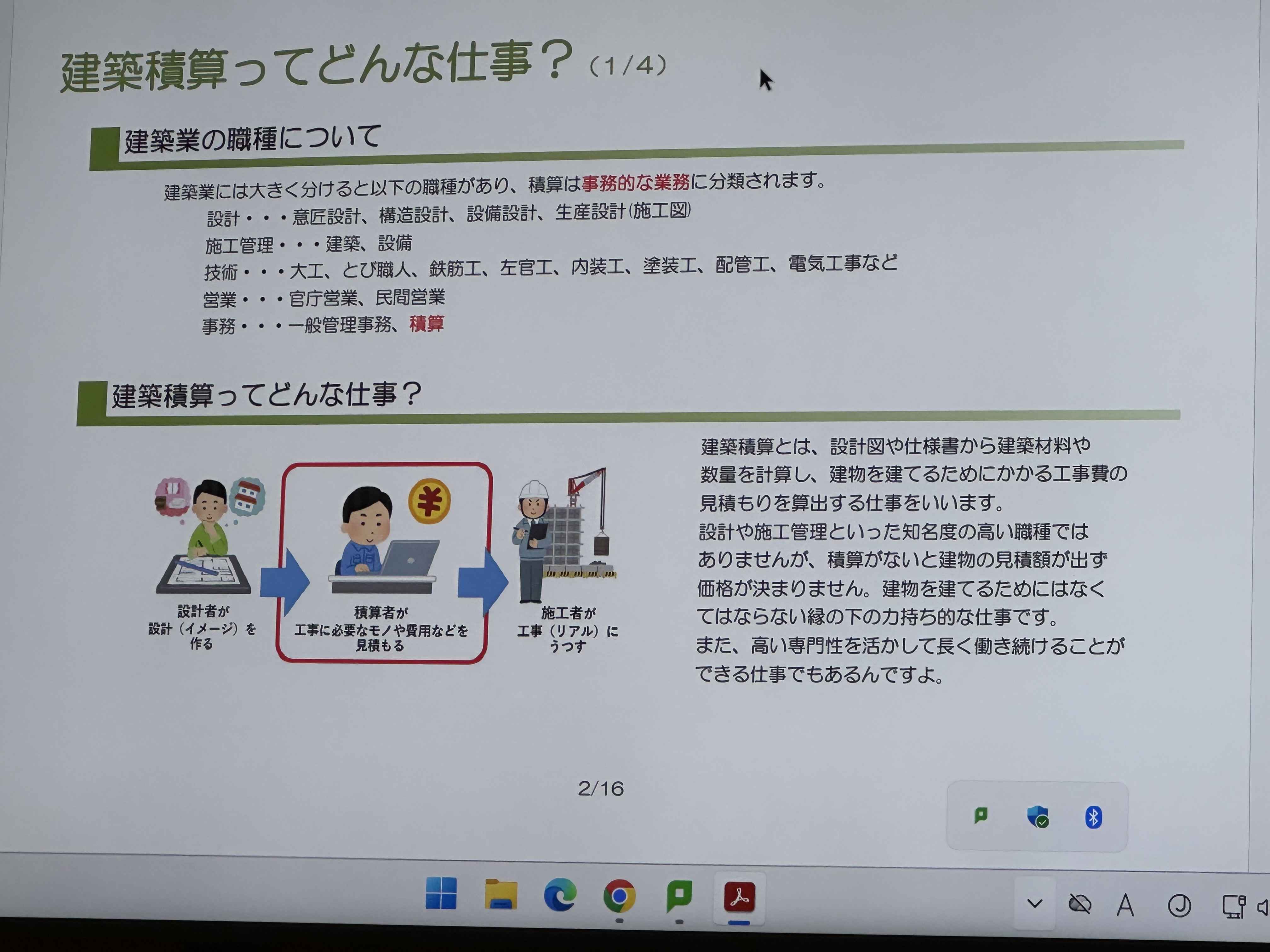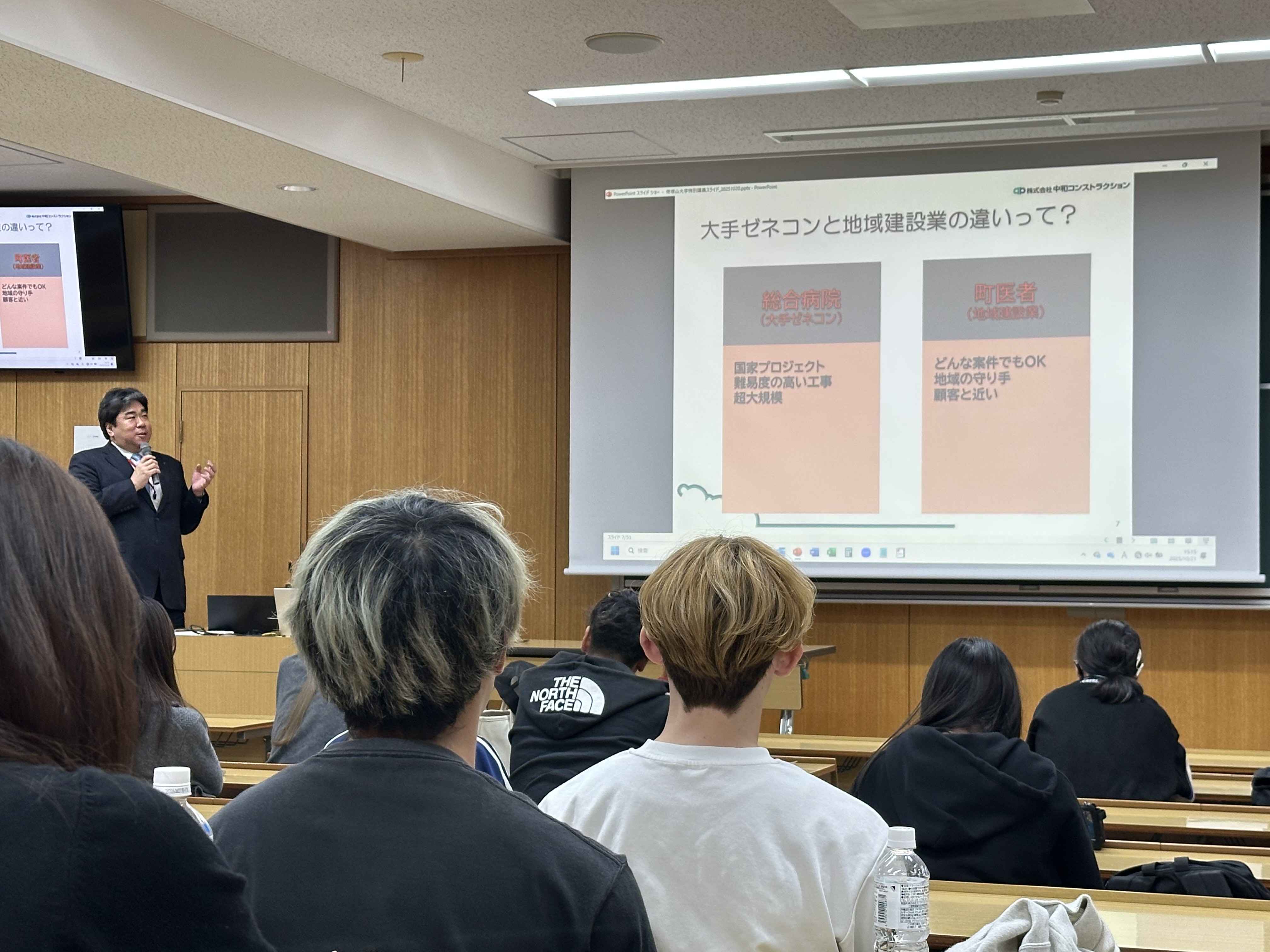 地域に根ざした建設業の役割や、設計図から工事費を算出する積算業務など、学科の学びとつながるリアルな仕事を知る貴重な機会となりました。