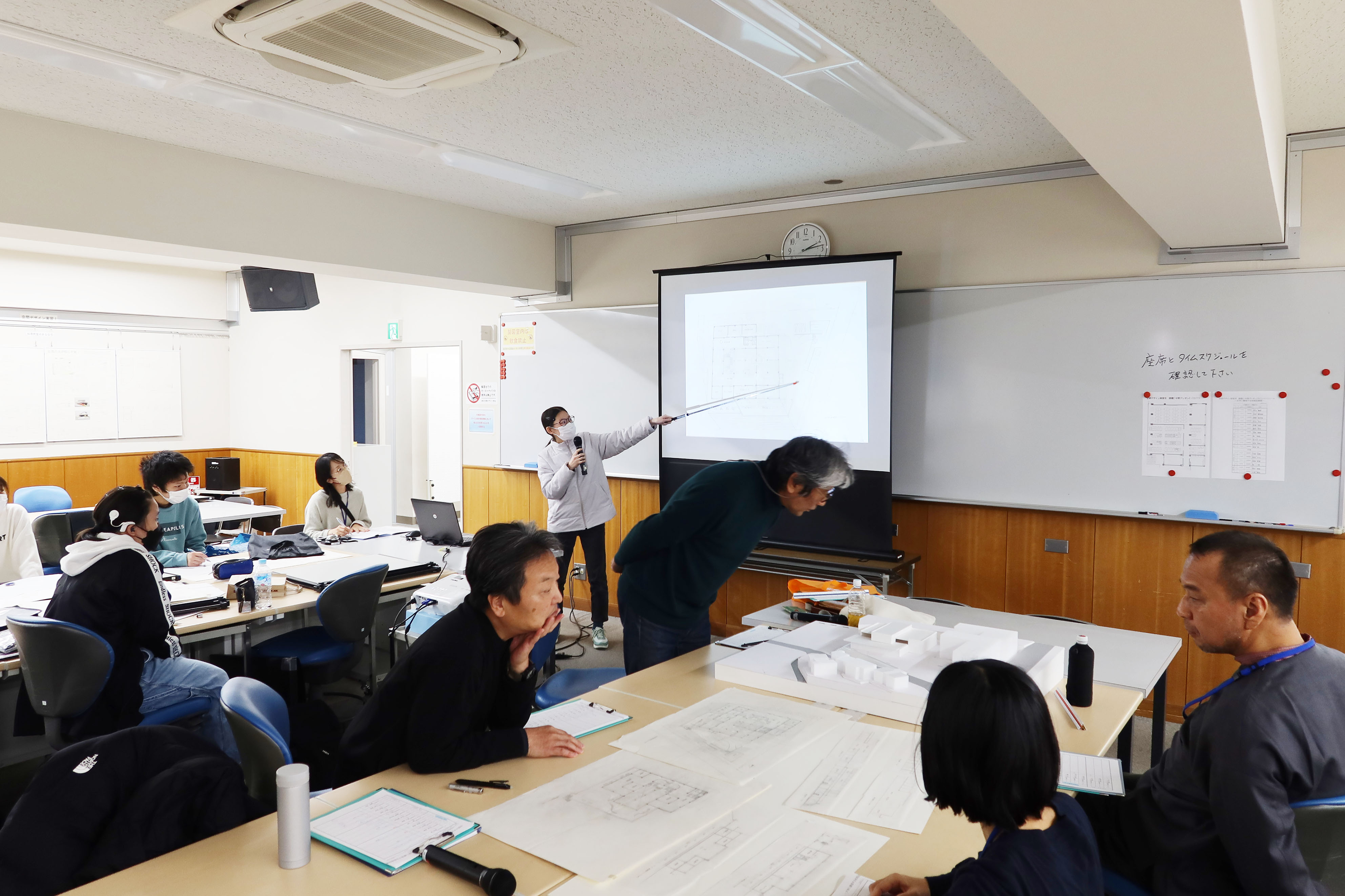 前回の発表では、まだ構想段階にあったアイデアが多く見られましたが、今回の発表では、敷地条件や利用者像を踏まえた、よりリアルな建築案へと大きく発展してきました。