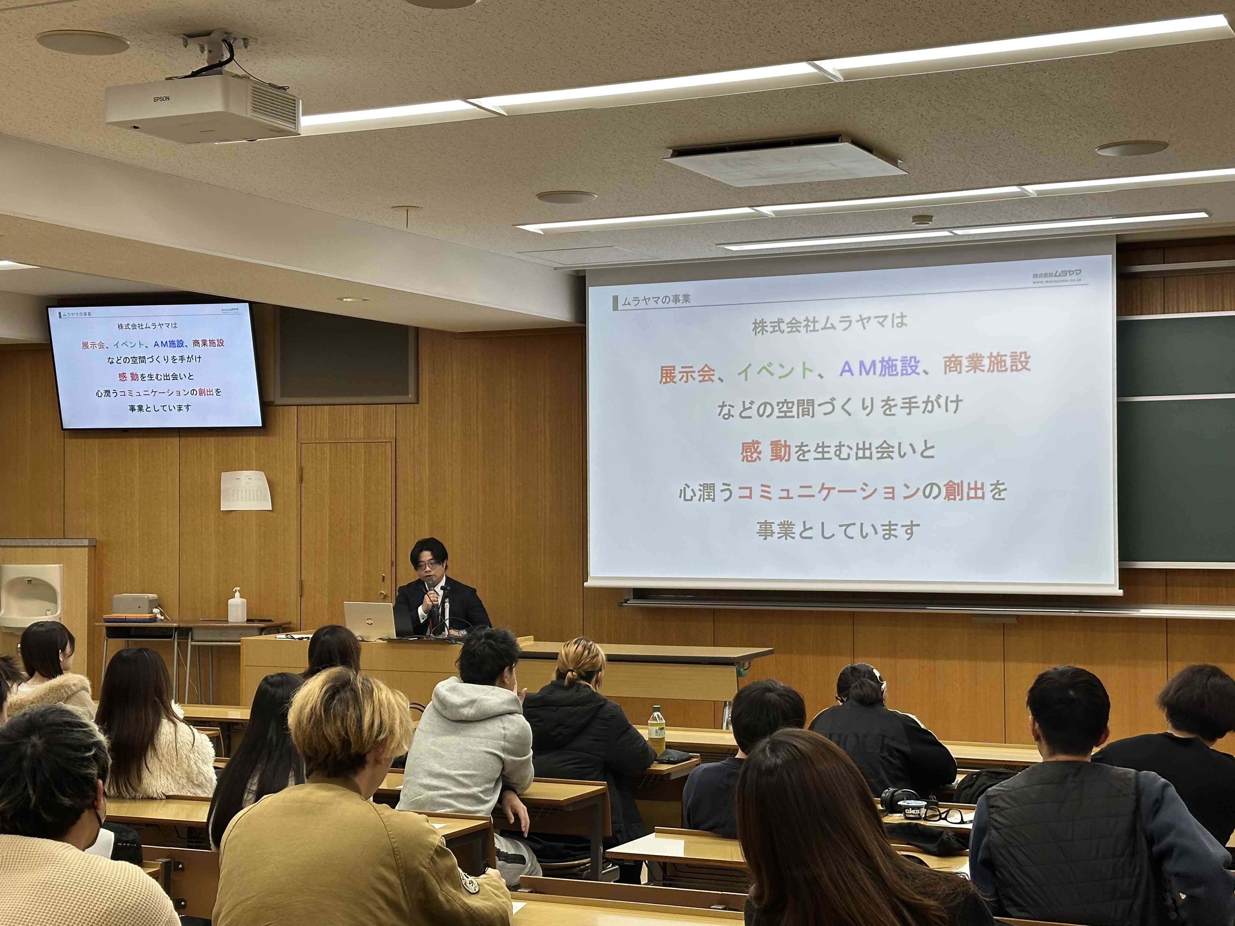 展示・エンターテインメントを強みとする 株式会社ムラヤマ 様、そして高品質な内装を手がける 株式会社J.フロント建装 様から、業界の概要や各社の特色について直接お話をいただきました。