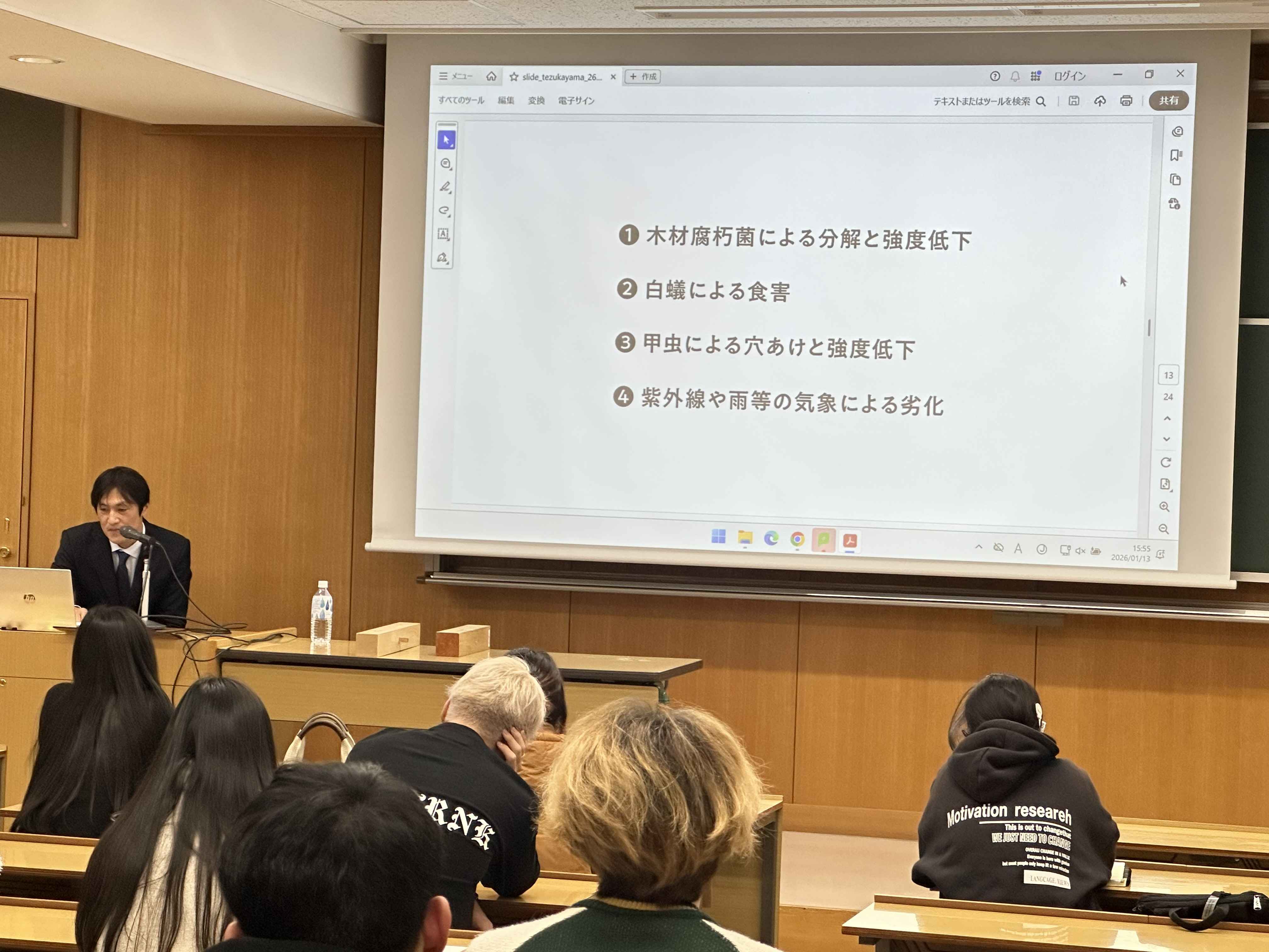 2年生向け特別講義として、食品工場を手がける建設会社と、社寺建築を専門とする建設会社の方々をお招きし、業界のリアルを直接学びました。