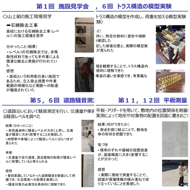 座学だけでは得られない「実験」「現場」「発表」を組み合わせた学びにより、学生たちは理解を深めるだけでなく、就職活動や社会で求められる“伝える力”と“考える力”を確実に伸ばしています。