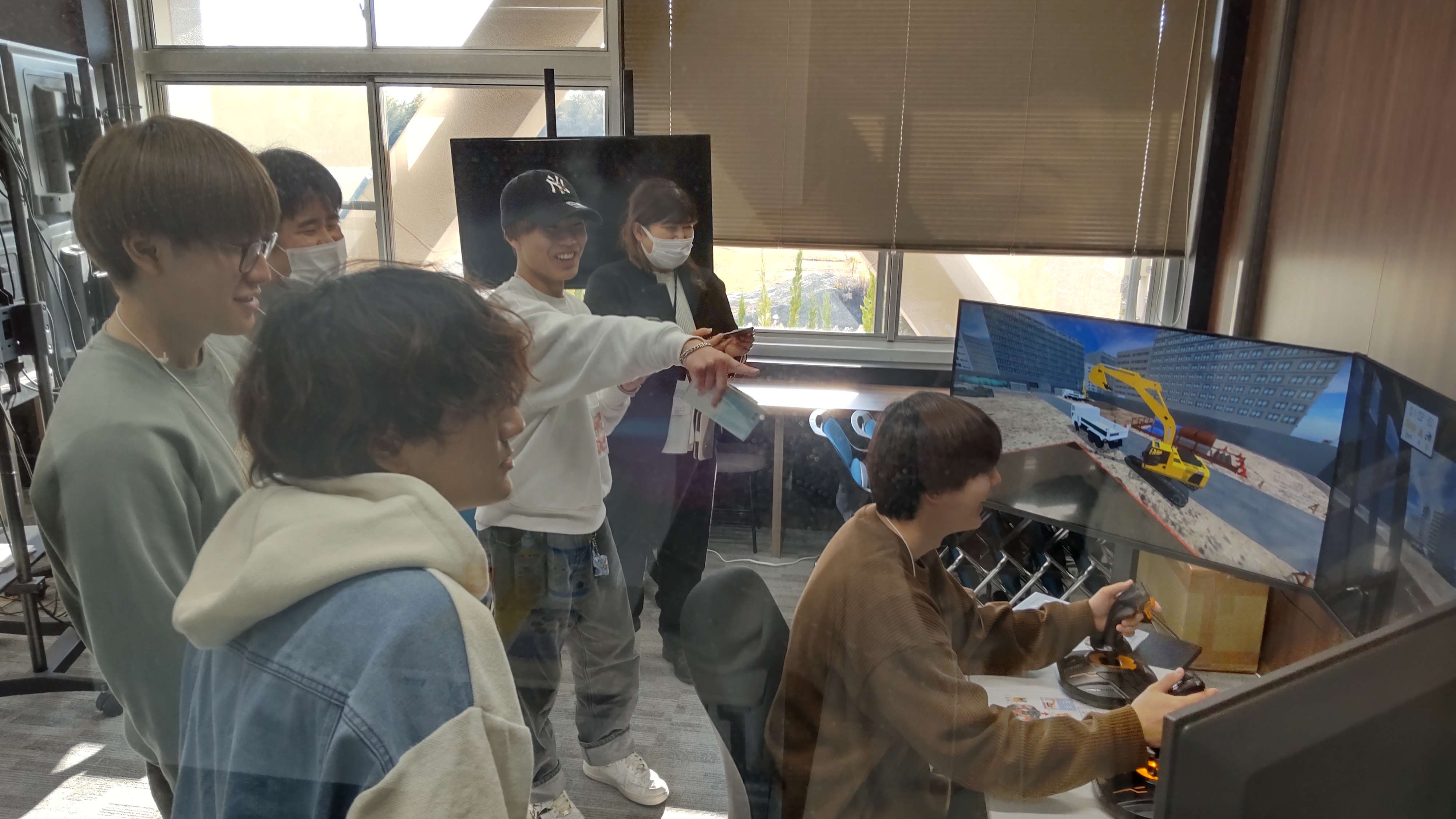 バックホウ・シュミレーターの操作体験
