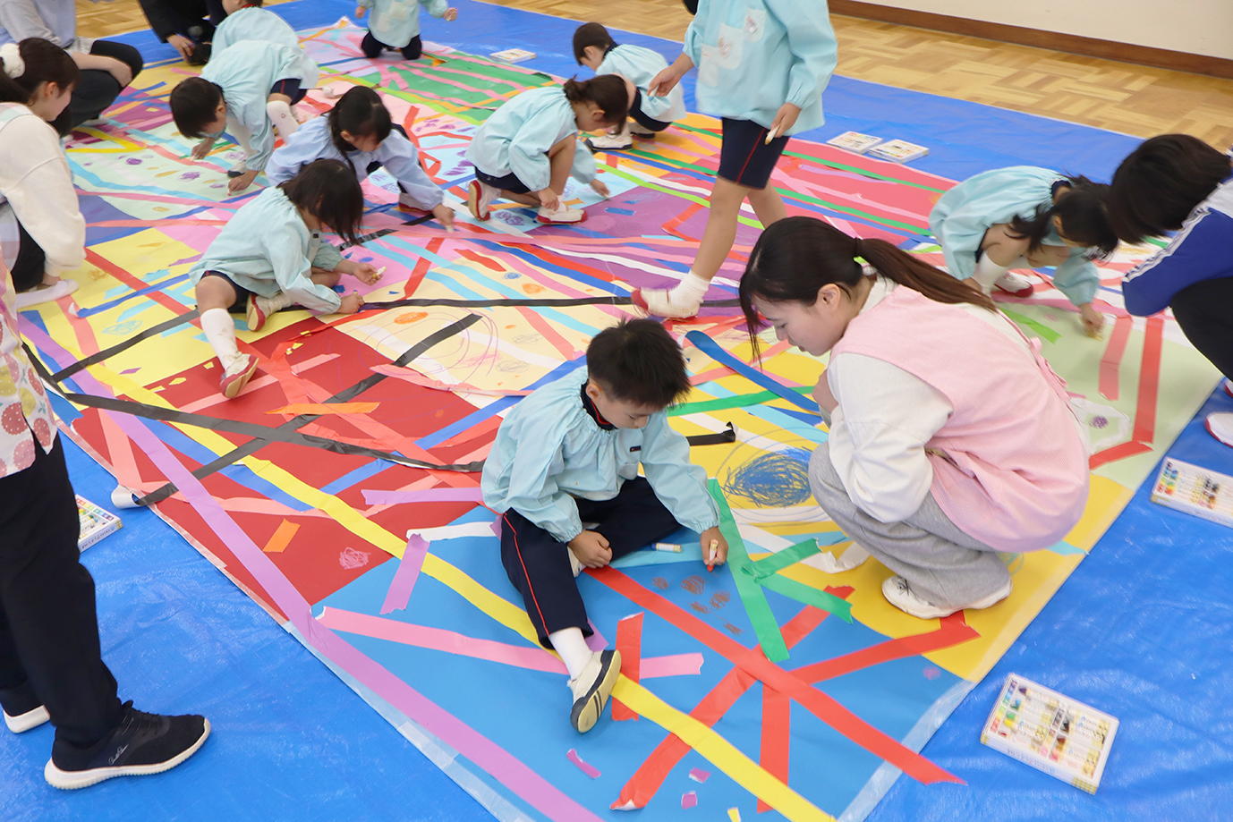 学生と園児はこれまで、本学客員教授・西山厚氏による大仏に関する講話を受け、歴史や文化への理解を深めてきました。その経験をもとにした園児の感性も、手や目、螺髪などのパーツの作成に生かされています。参加者全員が大仏のスケールを味わいながら、楽しんで学べる協働型造形活動です。