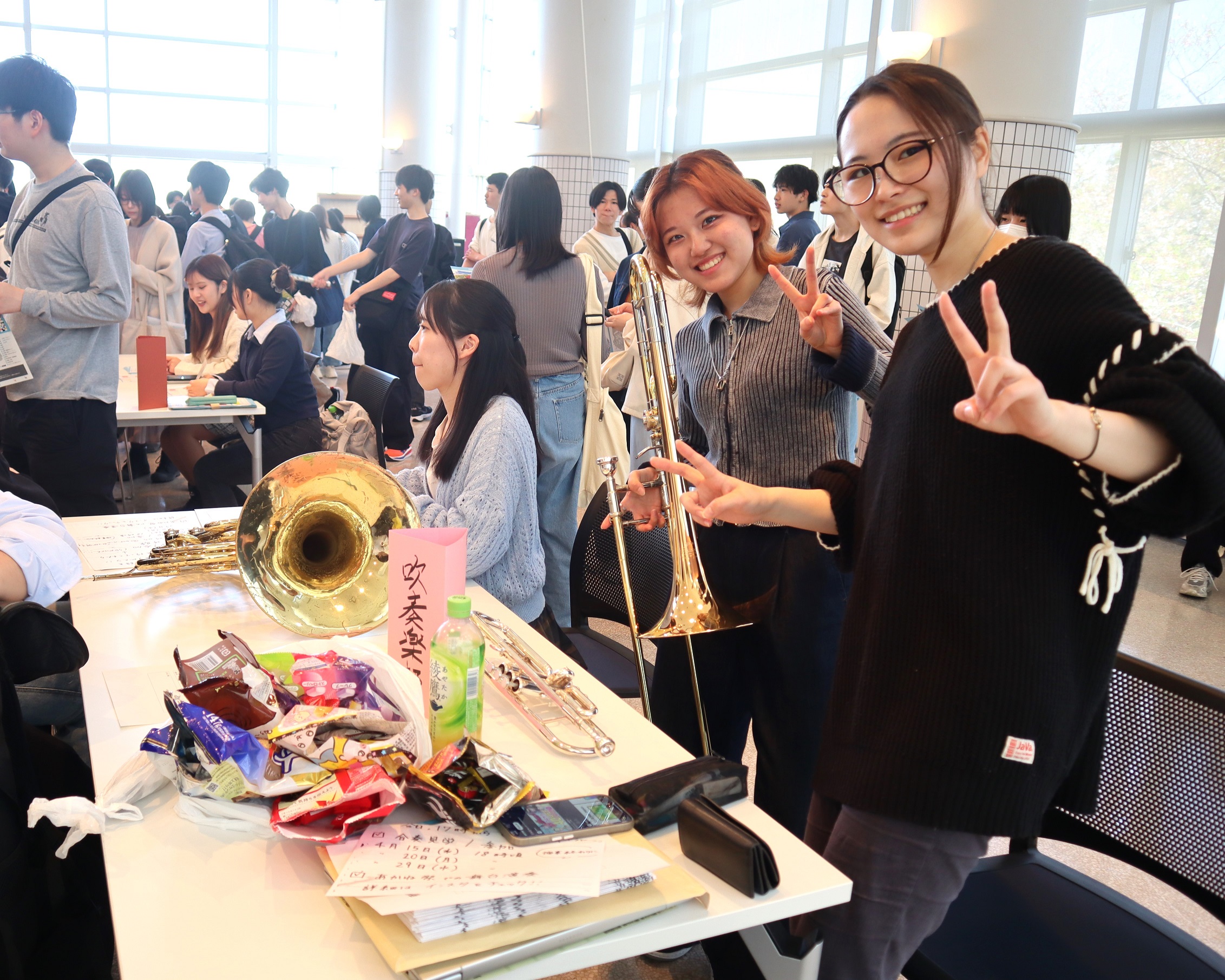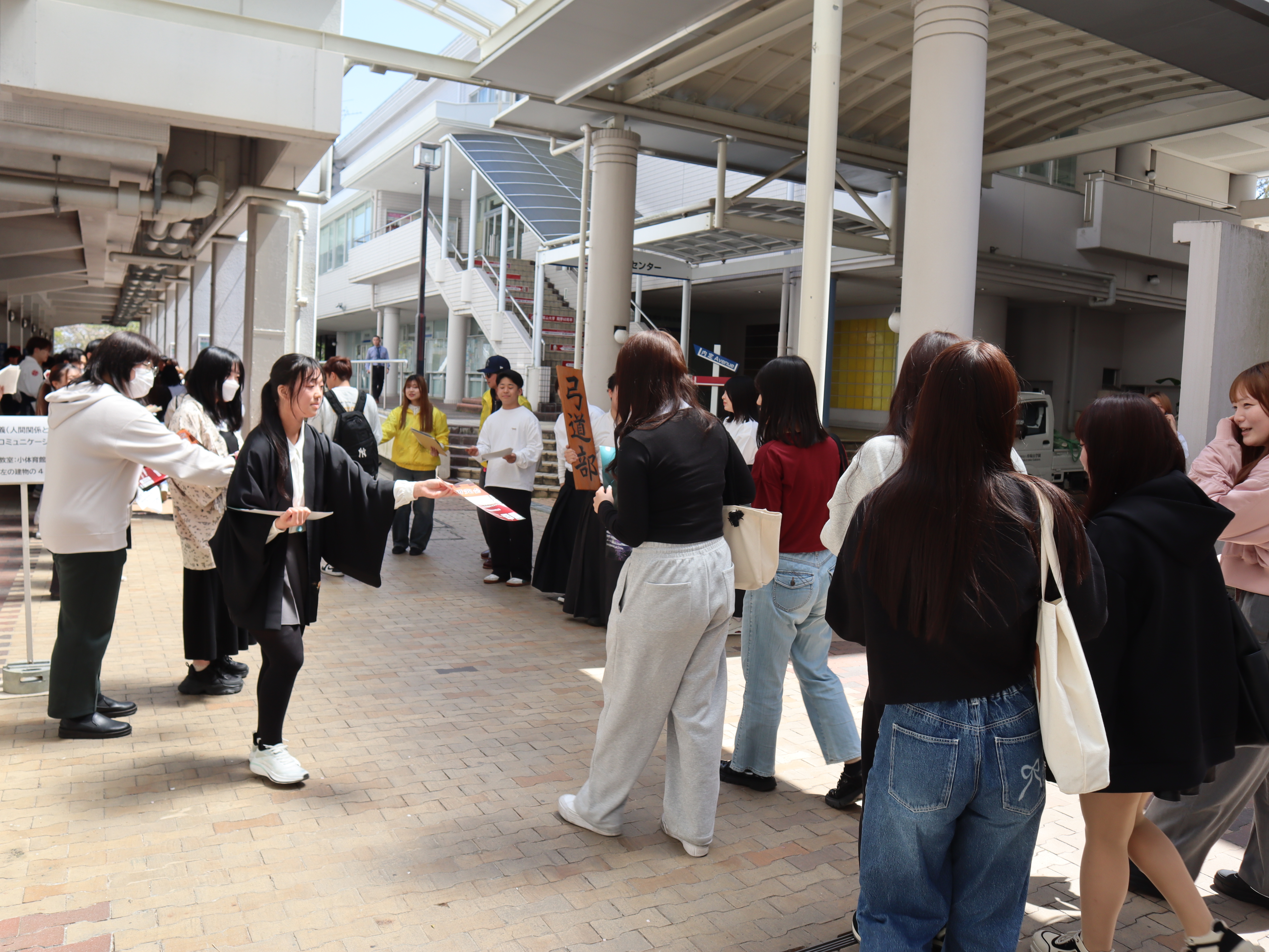 本年度は3部構成で行われ、第1部は学生会、クラブ、サークル35団体の先輩たちが「食堂」と「まほろば」に分かれ各々の団体が熱心に活動内容をアピールし、新入生との交流を楽しんでいました。
