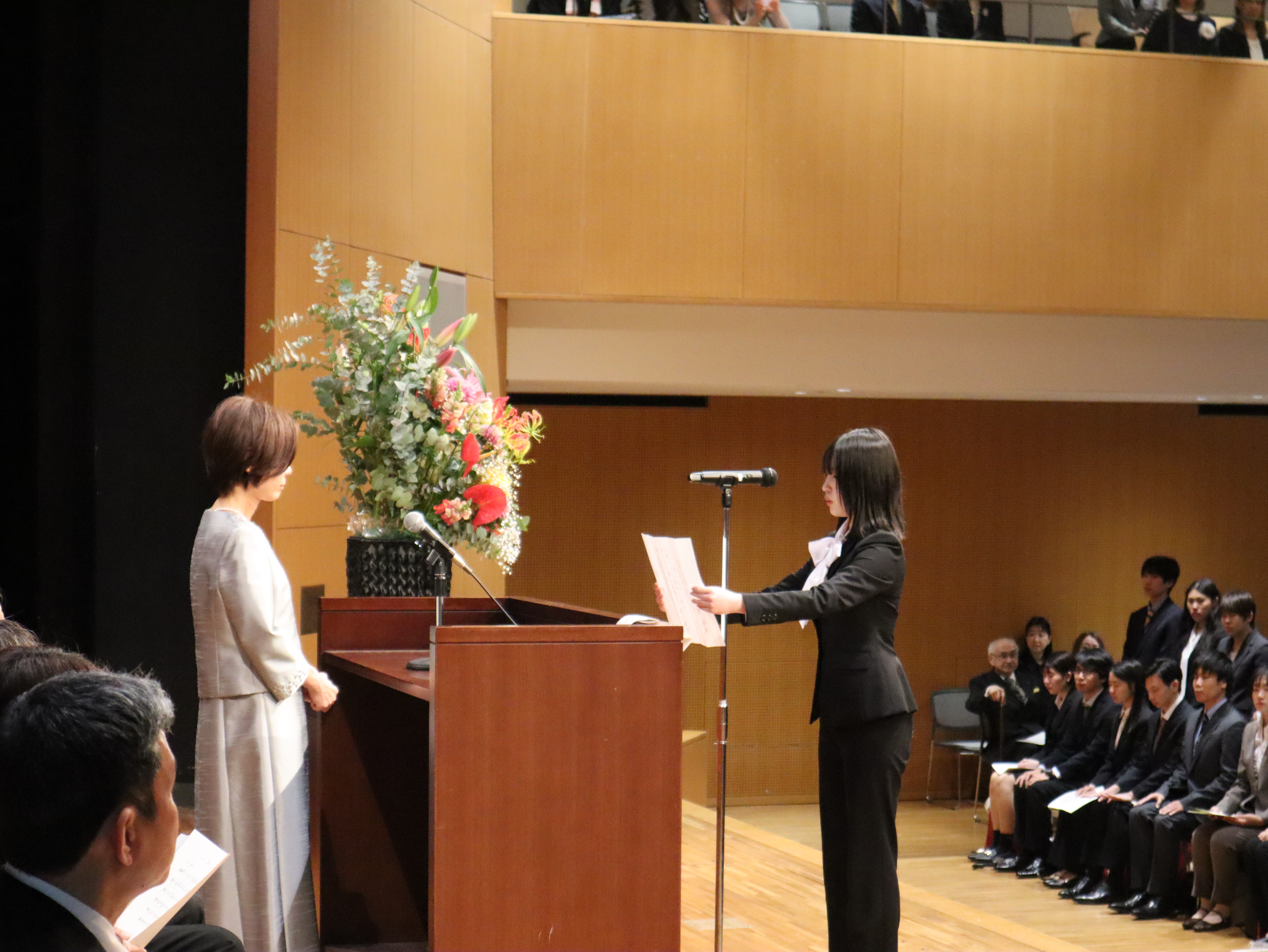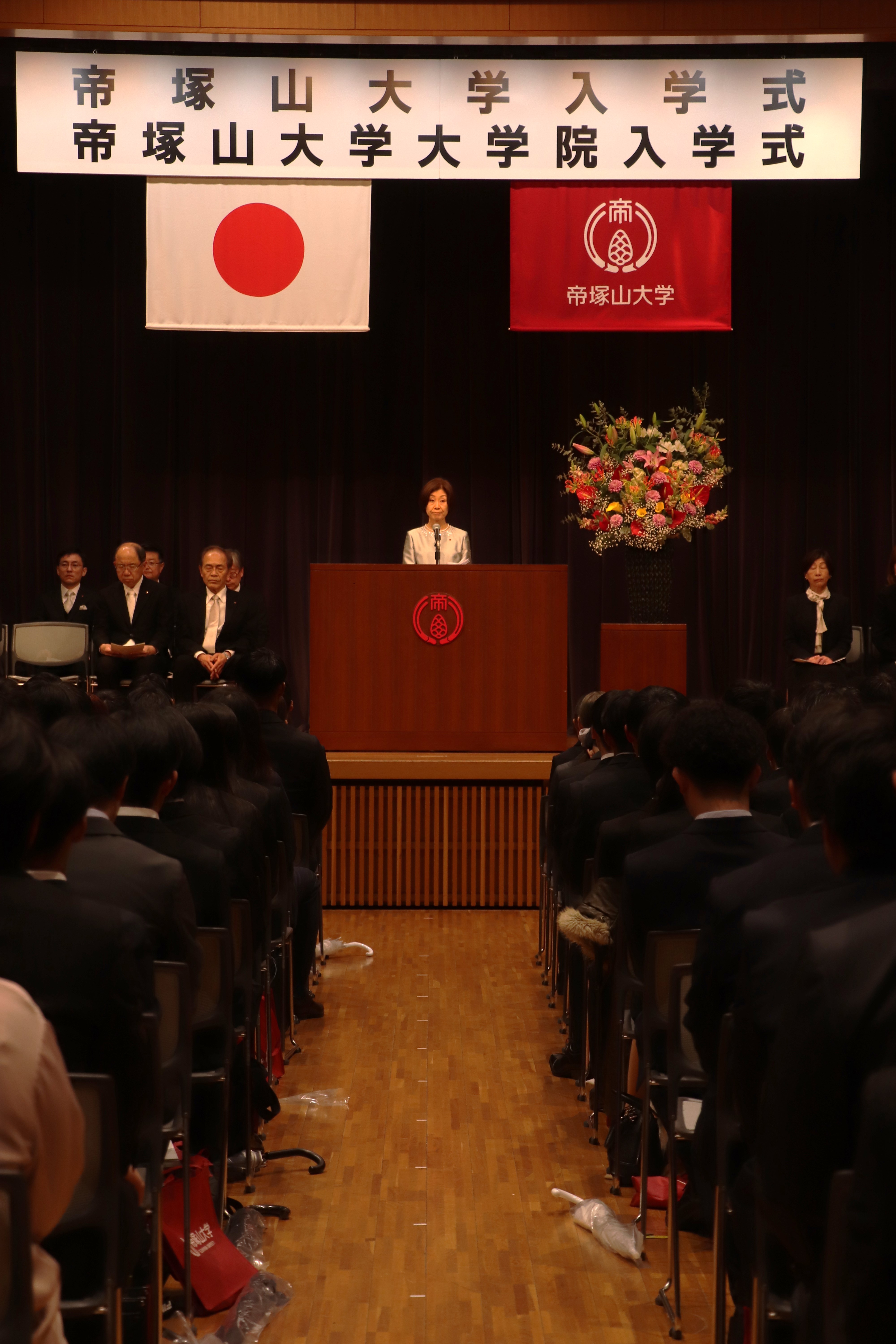 4月1日、第63回帝塚山大学入学式および第38回帝塚山大学大学院入学式を、学園前キャンパスの学園講堂にて挙行しました。