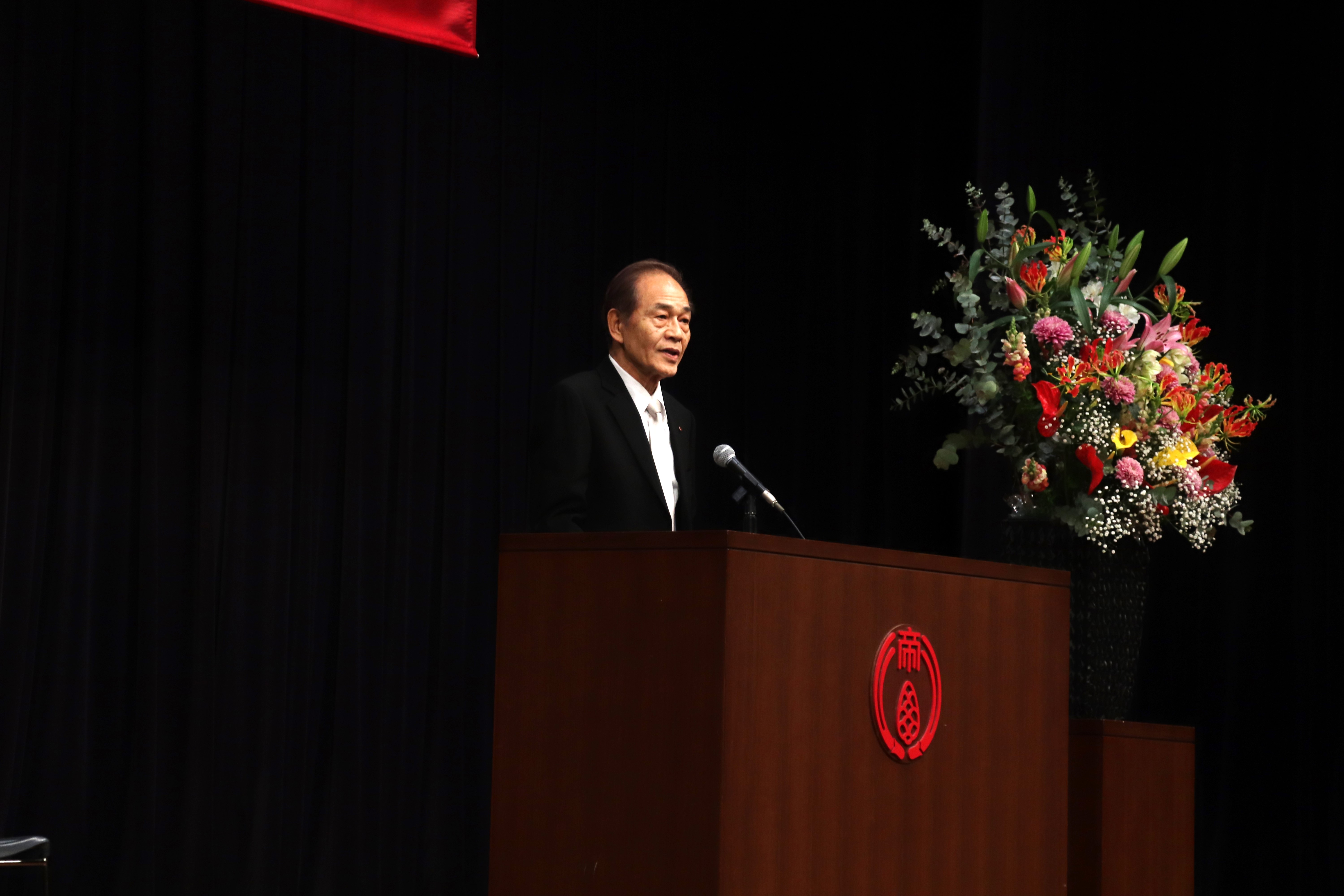 式辞で奥村学長は、本学の学びの特徴について紹介し、「面倒見の良い大学」として学生を専門的で、総合的で、実践的な「知」へと導き、学生がのびやかに生きていけるように教職員が一丸となって応援すると呼びかけました。