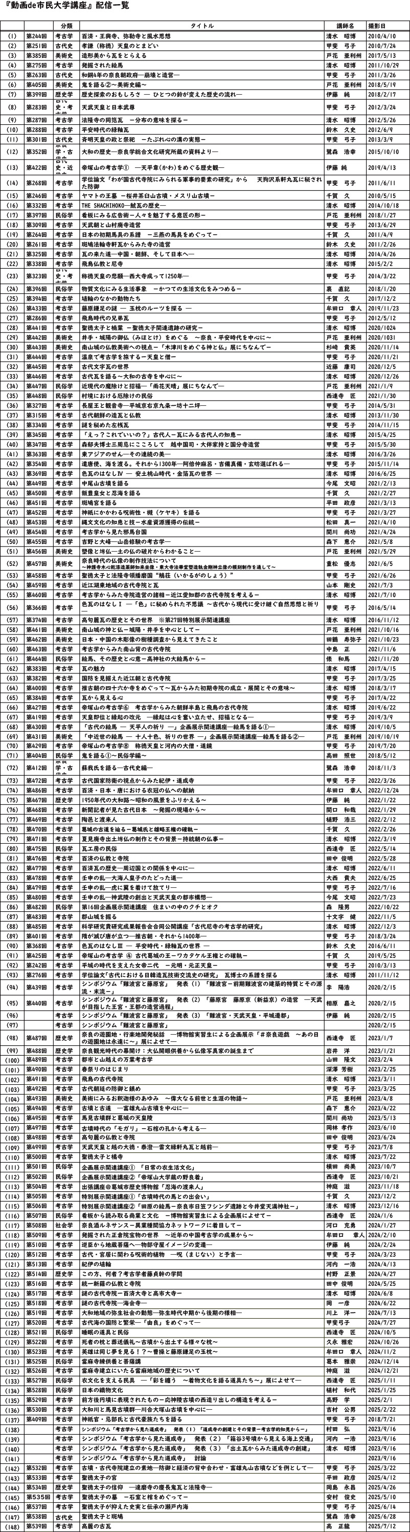 2026年2月6日 『動画de市民大学講座』(148)「高麗の古瓦」(考古学) 『動画de市民大学講座』(148) 【2026年2月18日(水)9:00配信開始】 「高麗の古瓦」 高 正龍 氏 (立命館大学名誉教授) 前の記事へ