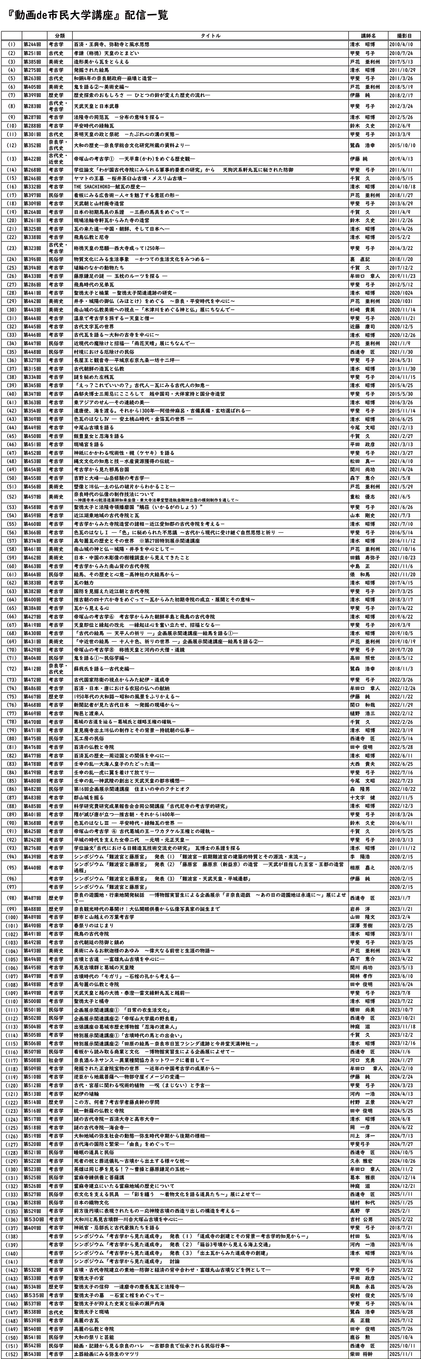 2026年4月4日 『動画de市民大学講座』(152)「土器絵画にみる弥生のマツリ」(考古学) 『動画de市民大学講座』(152) 【2026年4月15日(水)9:00配信開始】 「土器絵画にみる弥生のマツリ」 柴田 将幹 氏 (田原本町教育委員会事務局文化振興課文化財活用係長) 前の記事へ
